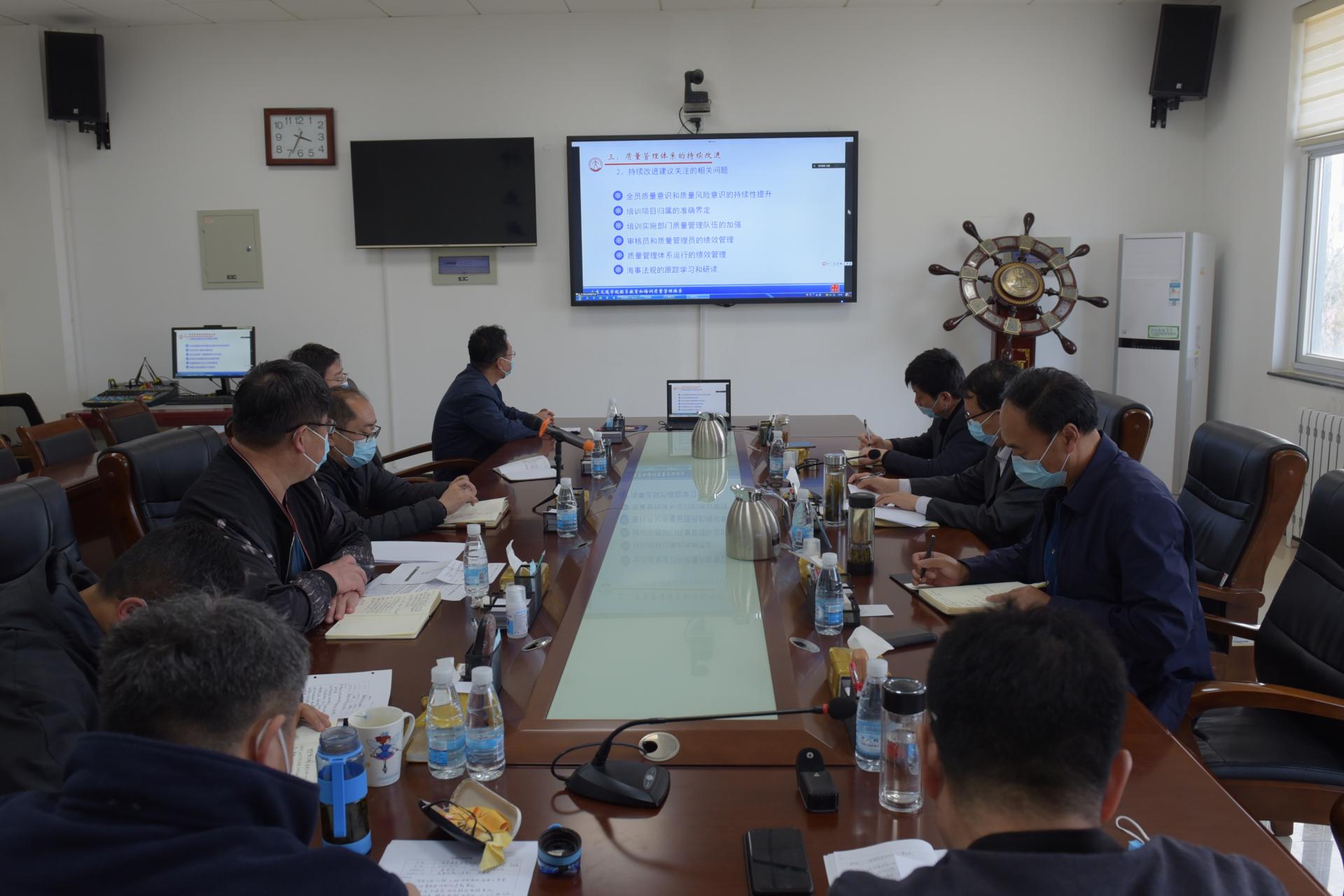 会上,船员教育与培训质量管理处负责人汇报了近期质量体系文件的审阅、修改情况和迎接“换证审核”的工作计划;海事局审核员王涛副教授针对质量体系的建设与运行作了宣贯培训;与会人员就质量体系持续改进等工作进行了讨论交流。