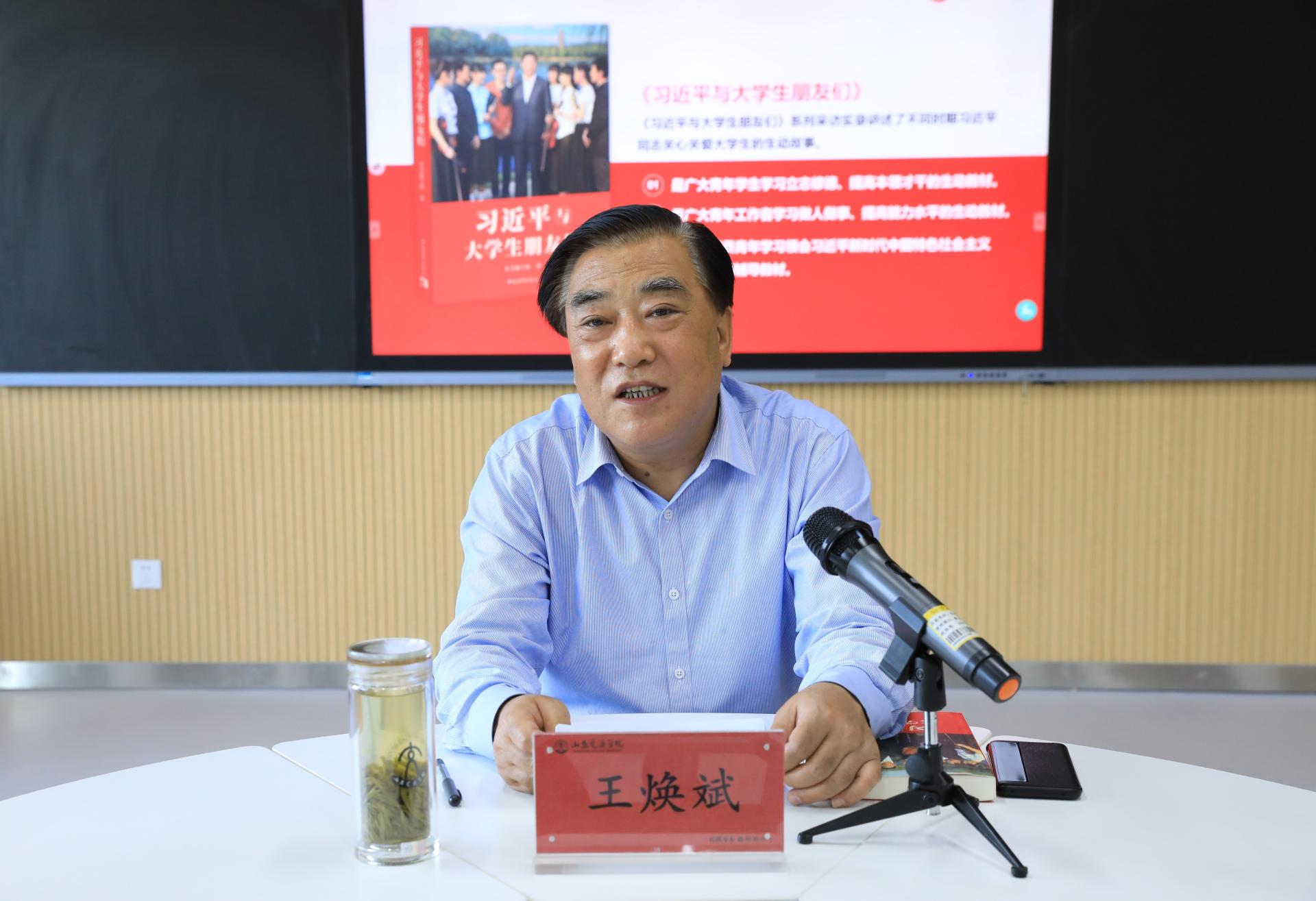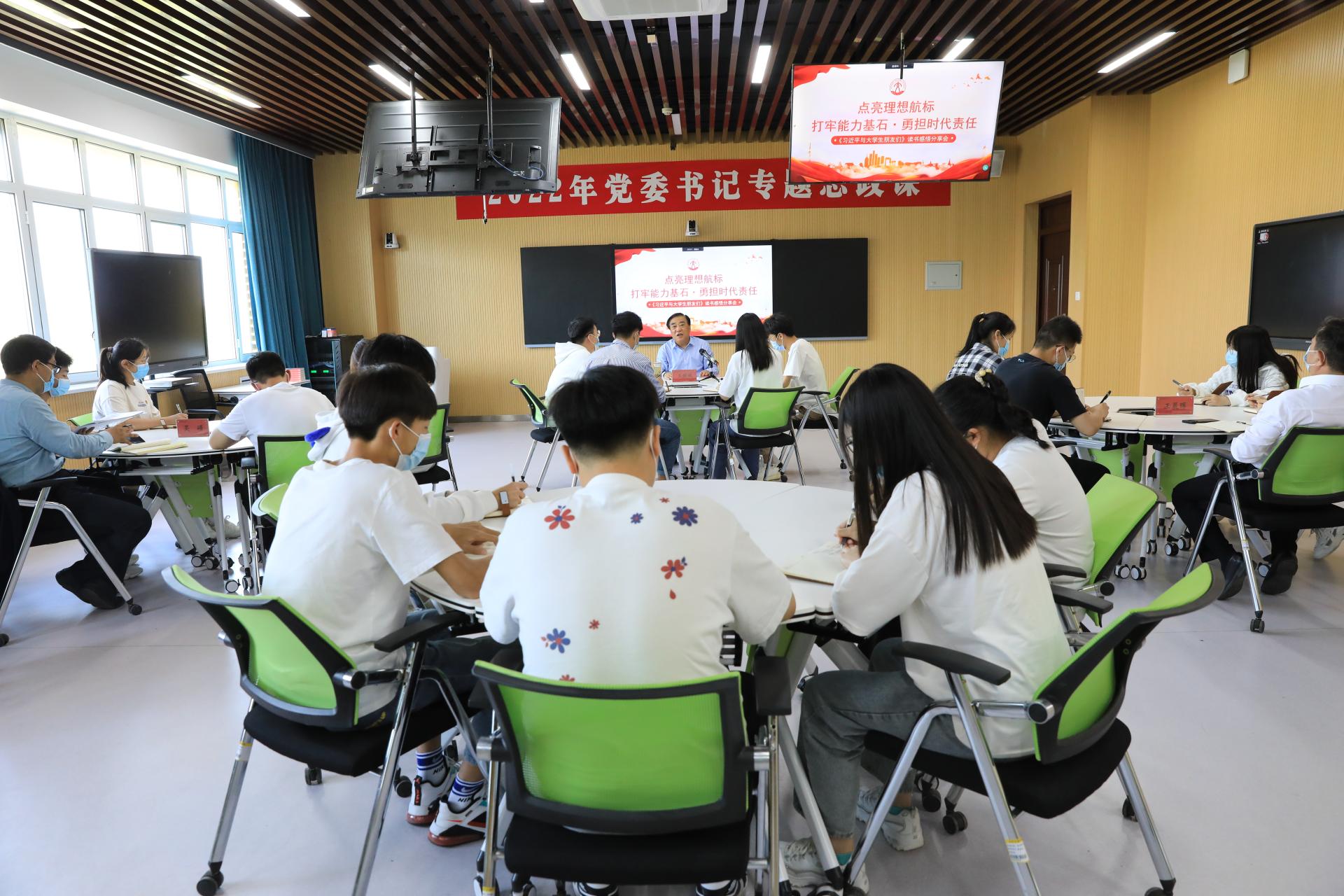 5月4日下午,学校党委书记王焕斌在长清校区机电楼智慧教室A218以《点亮理想航标,打牢能力基石,勇担时代责任——<习近平与大学生朋友们>读书感悟分享会》为题,给青年学生讲授了一堂别开生面的思政课。