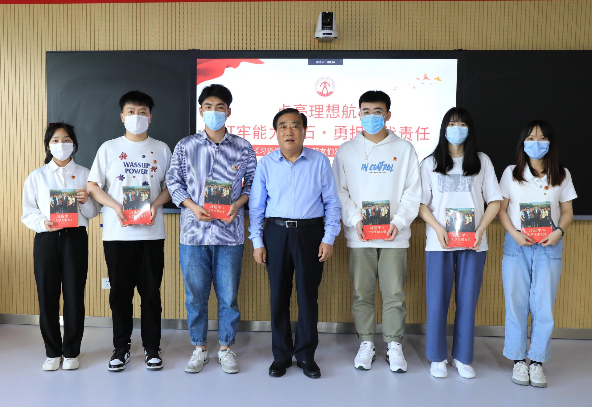 思政课最后,王焕斌向学校“青马工程”班学员代表赠送了《习近平与大学生朋友们》一书,鼓励同学们多读书、读好书,为投身交通强国建设贡献力量,在青春的赛道上奋力跑出更好成绩!