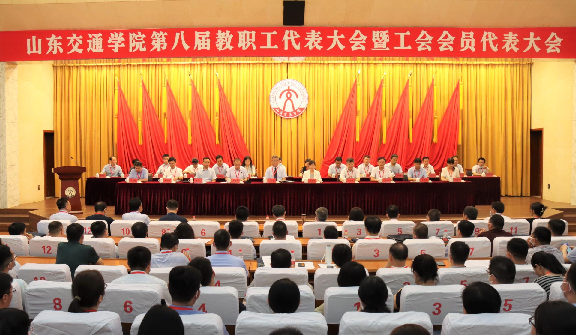 6月23日,山东交通学院第八届教职工代表大会暨工会会员代表大会在长清校区召开,省教育工会副主席赵晓枫出席会议并致辞,学校党委领导班子成员和来自不同岗位的正式代表、列席代表300余人参加大会。大会在威海校区设立视频分会场。大会由党委副书记李贞涛主持。