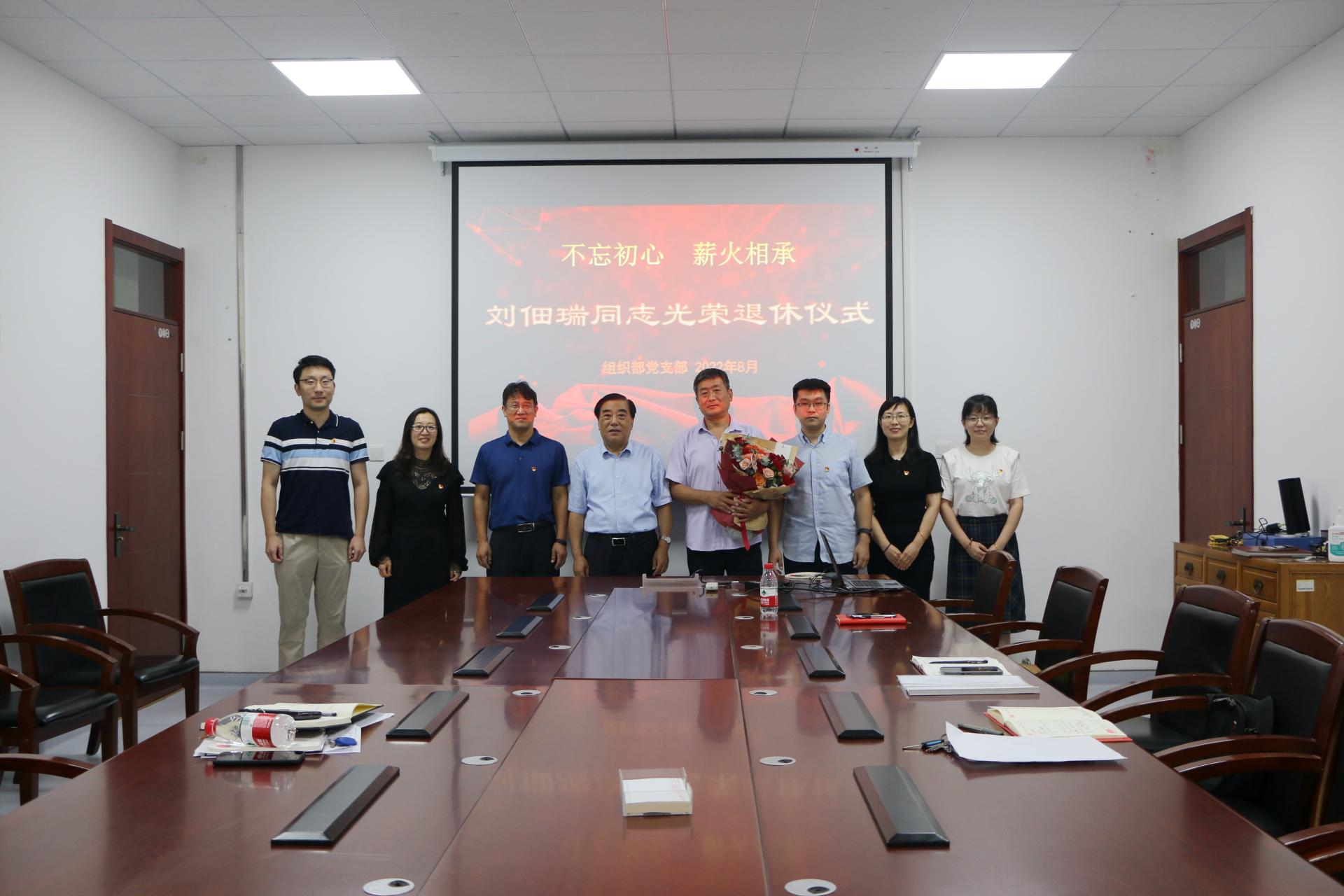 会议最后,支部全体党员为刘佃瑞同志举行了荣休仪式。王焕斌代表学校向刘佃瑞为学校发展作出的各项贡献表示感谢,并送上鲜花和祝福,希望他退休不退志、离岗不离党,在安享退休生活之余,继续关心和支持学校发展,积极建言献策、贡献力量,为同志们做好模范表率。刘佃瑞回顾了自己三十余年工作、创业、奋斗的历程,感慨学校发展的巨大变化和取得的辉煌成绩,表达了对学校的感激之情。他表示,退休后将继续关注支持学校的发展,在新老传承中发光发热,以实际行动为学校各项事业的发展贡献力量,祝福学校未来蒸蒸日上。