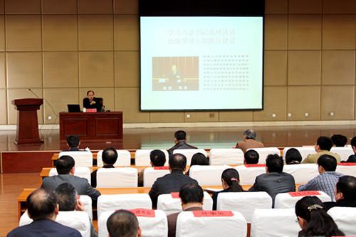 国家人力资源和社会保障部中国人事科学研究院原常务副院长、中国人才研究会副会长、博士生导师吴德贵教授作了题为“学习习近平总书记系列讲话、加强领导干部队伍建设”的专题报告。吴教授就新形势下坚持以十八届三中全会精神为指导,做一个什么样的领导干部,怎样做一个好干部进行了系统分析和讲解。报告数据充分、理论精深、案例详实、语言生动。我校全体中层干部受益匪浅。