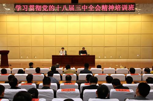 党委书记孙秀丽作动员讲话。她指出,举办这次培训班,是学校党委贯彻落实中央和省委、省委高校工委工作部署,深入学习贯彻习近平总书记系列重要讲话精神,深入学习贯彻党的十八届三中全会精神的具体行动,是进一步统一思想、增进共识,提高全校领导干部综合素质和领导科学发展能力的重要举措,也是推动学校内涵式发展,全面提高教育教学质量,加快建设应用型高水平大学步伐的有力举措。孙秀丽就学习贯彻党的十八届三中全会精神提出了明确要求:一是要高度重视,精心组织;二是要领导带头,率先垂范;三是要联系实际,务求实效;四是要突出重点,统筹兼顾。