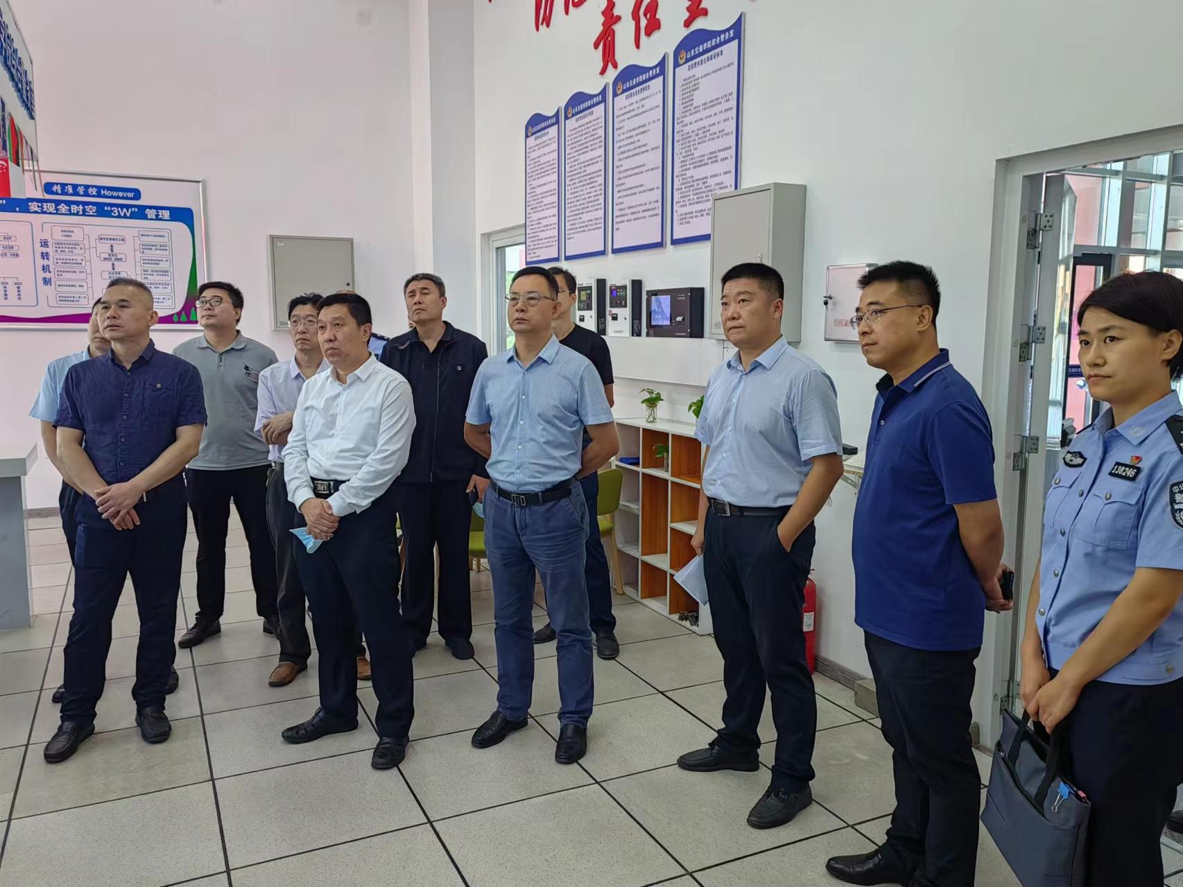 9月22日,山东省教育厅总督学仲洪波,安全管理处处长魏治法、副处长姜业华,济南市公安局经文保支队支队长朱容海来校参观警务室。学校党委委员、副院长曲同军陪同参观。