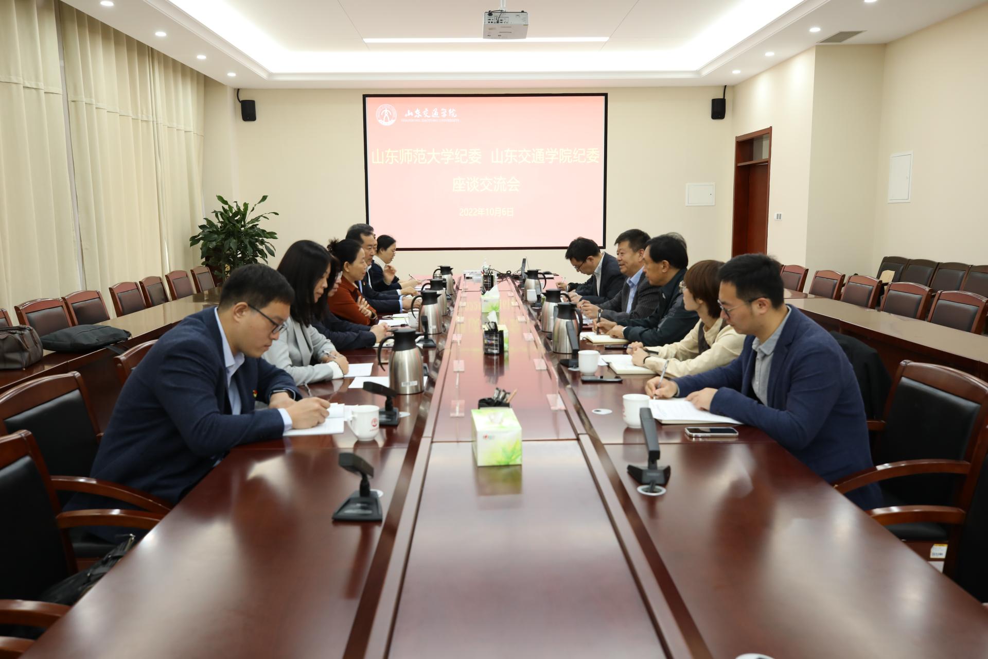 10月6日上午,山东师范大学党委常委、纪委书记、监察专员周婧一行7人来我校长清校区座谈交流。学校党委书记王焕斌,党委委员、纪委书记、监察专员刘世杰,党委委员、副院长张化祥在明德楼贵宾室会见客人。