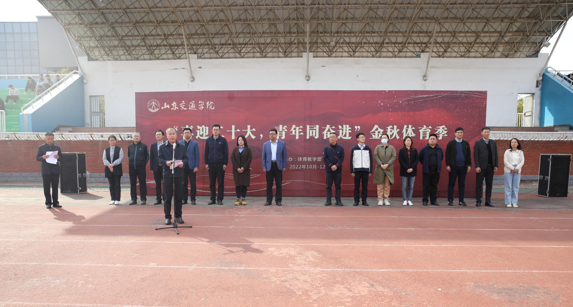 10月12日下午,我校2022年“金秋体育季”开幕式在长清校区田径场举行,学校党委副书记李贞涛出席开幕式并致辞。开幕式由体育教学部主任陈晋主持。