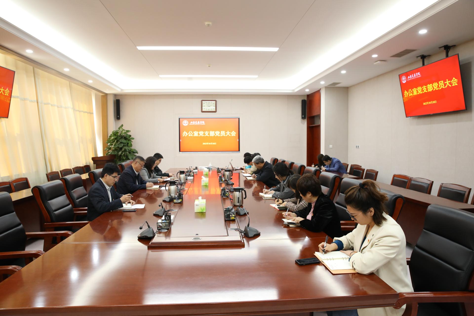 10月18日上午,办公室党支部在长清校区明德楼303会议室召开党员大会进行集体学习。党委副书记、院长陈松岩以普通党员身份参加了学习。会议由办公室党支部书记孙迎主持。
