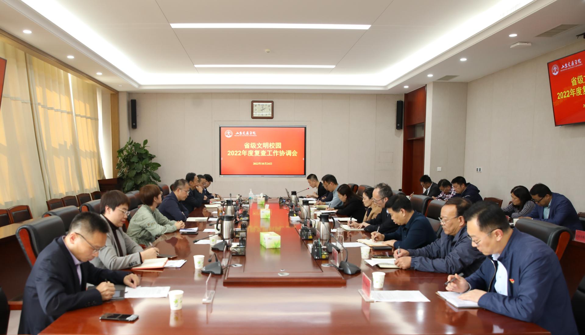 10月24日下午,学校在长清校区明德楼303会议室召开省级文明校园2022年度复查工作协调会。党委副书记李贞涛出席并主持会议。
