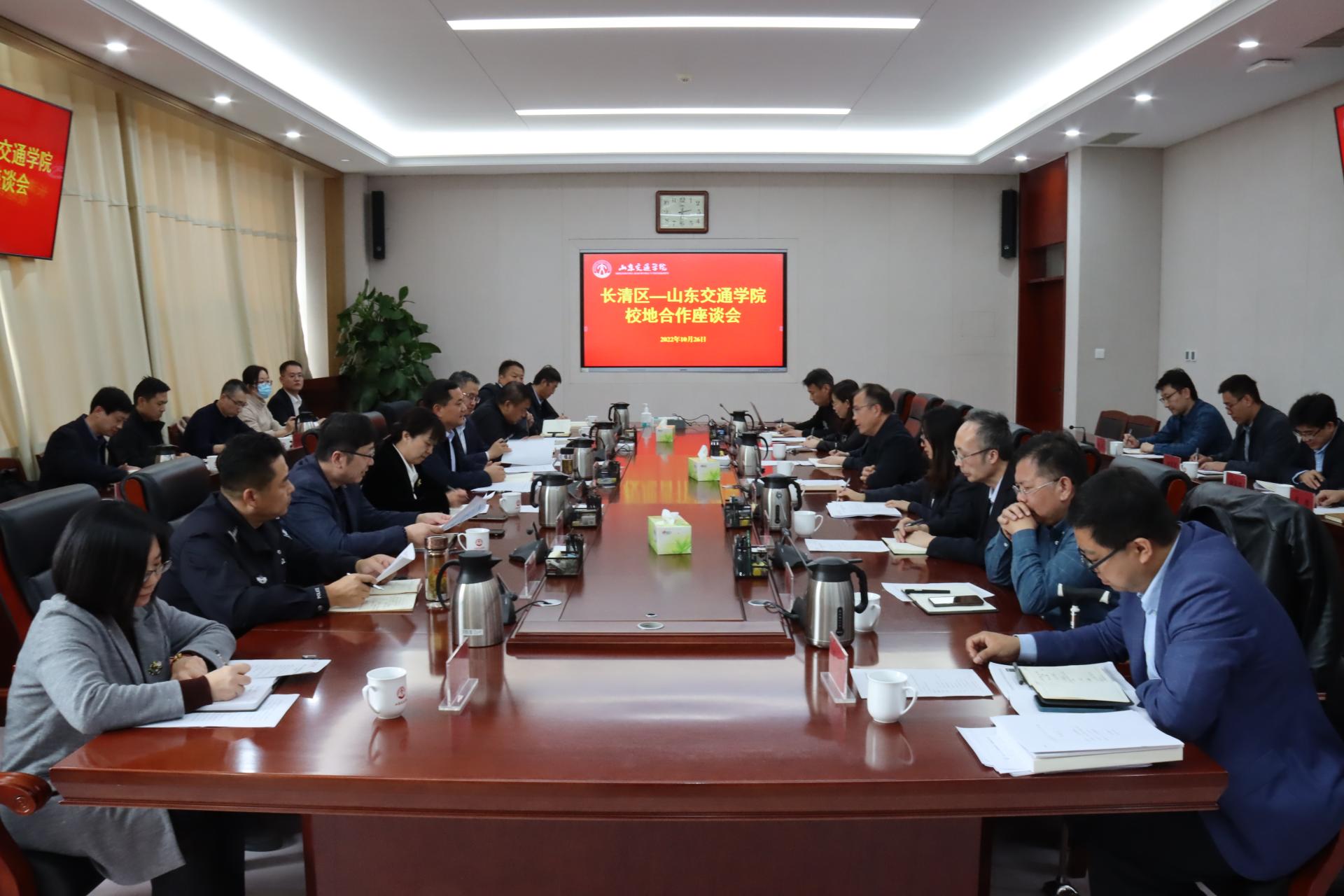 学校党委办公室(学校办公室)、党委组织部(党校)、人力资源处(教师工作部、人才工作办公室)、教务处、科研处、招生就业处、后勤管理处、基建处、产教融合办公室、团委负责人,长清区委组织部、区直机关工委、区委编办、团区委、区人社局、区工信局、区住建局、区水务局、区公安分局交警大队分管负责人,大学城管委会高校联络部主要负责人以及学校挂职干部参加座谈会。