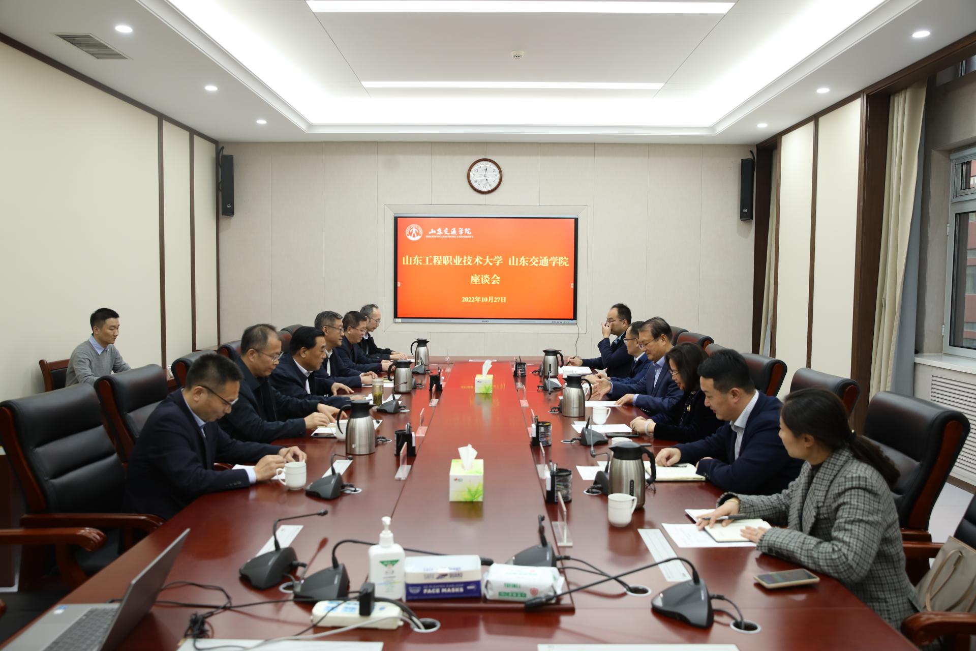 10月27日,山东工程职业技术大学党委书记孔祥云等一行7人来校座谈交流,座谈会在明德楼302会议室举行。学校党委书记王焕斌,党委副书记、院长陈松岩,党委副书记李贞涛,党委委员、副院长张化祥出席座谈会。会议由张化祥主持。