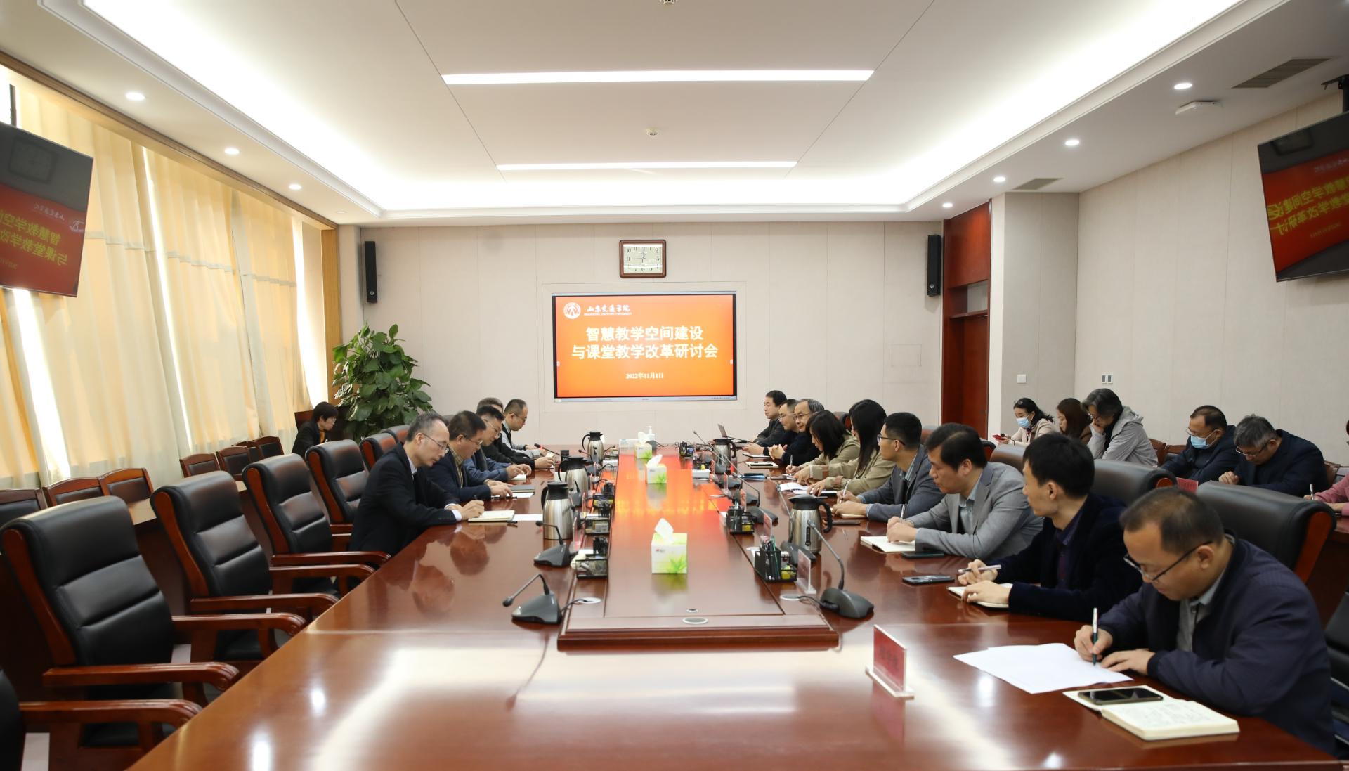 11月1日,学校在长清校区明德楼303会议室召开智慧教学空间建设与课堂教学改革研讨会。党委委员、副院长张化祥出席并主持会议。
