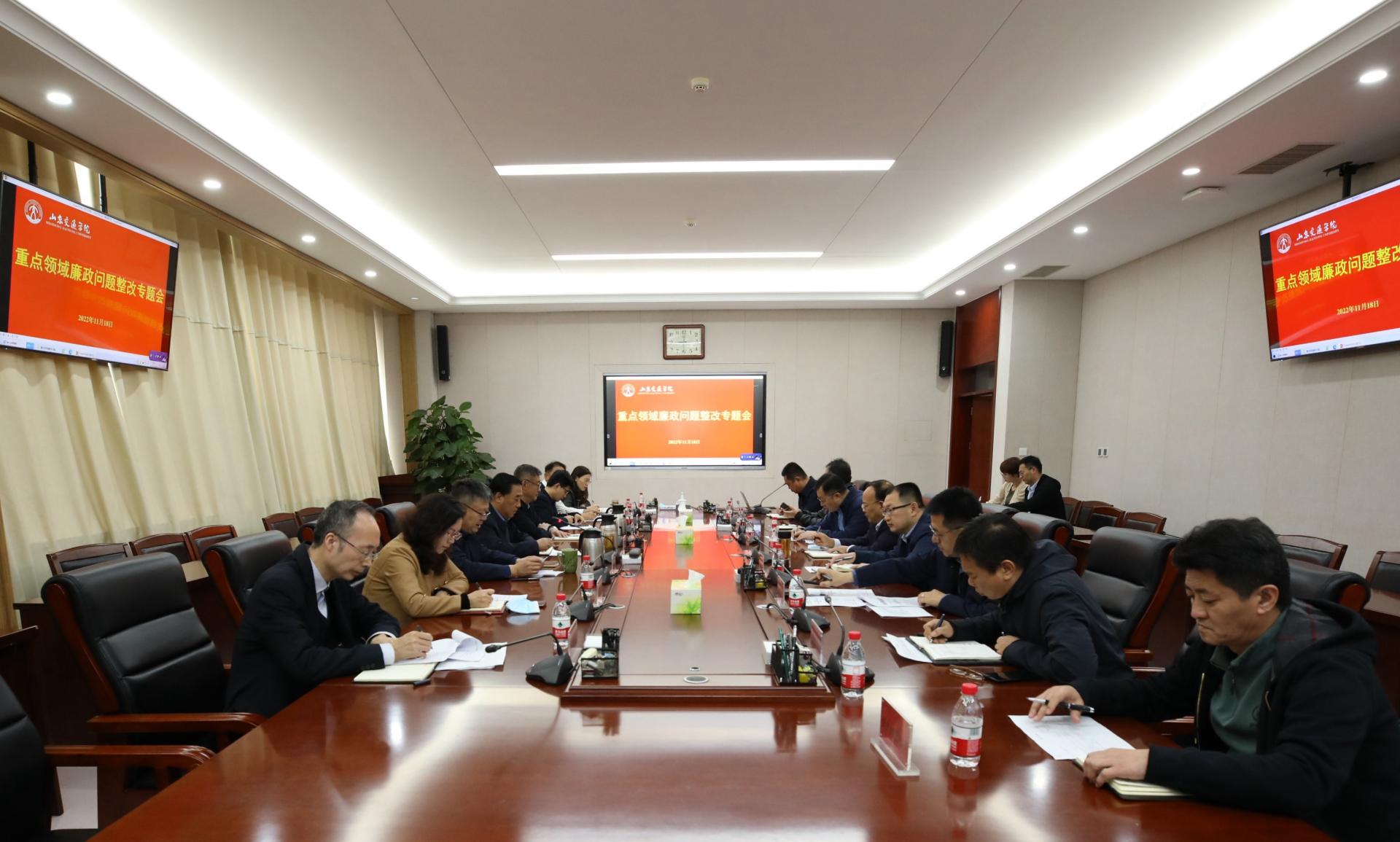 王焕斌就重点领域廉政问题整改工作提出三点要求。一是提高政治站位,压实重点领域廉政问题整改主体责任。各责任部门要进一步提高思想认识,不讲条件、不做选择、不打折扣、不搞变通,以最坚决的态度抓好问题整改,坚决做到问题不解决不松手、整改不到位不收兵,务必确保在规定时限内高质量完成。二是突出问题导向,构建重点领域廉政问题整改长效机制。要深刻剖析产生问题的深层次原因,全面整改、彻底整改,把抓好重点领域廉政问题整改与学校内部建章立制结合起来,举一反三、标本兼治,着力构建系统全面、务实管用的廉政建设长效机制。三是注重成果运用,推动学校各项事业高质量发展。要总结凝练整改推进过程中好经验、好做法,把整改成果运用与学习贯彻党的二十大精神、推进学校“十四五”发展规划、完成申硕、更名大学目标紧密结合,切实把整改提高的过程转化为推动重点工作落地见效的过程。