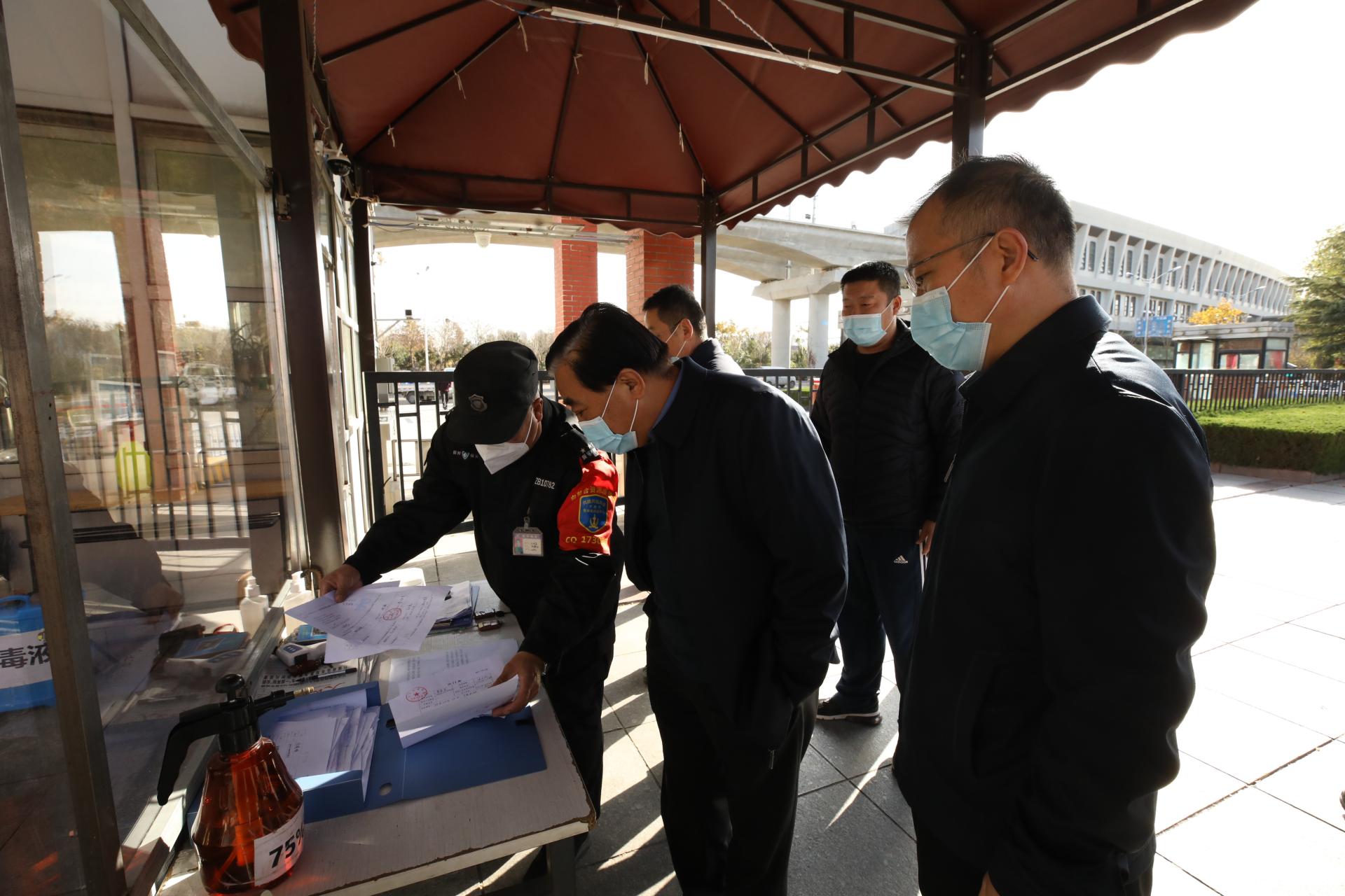 检查中,王焕斌、李贞涛一行现场查看了校门管理、校内快递点、核酸检测点、餐厅、超市、心理健康咨询中心等,认真查看了货物配送、人员进出、环境消杀等记录,听取了相关部门负责人关于疫情防控工作的汇报。