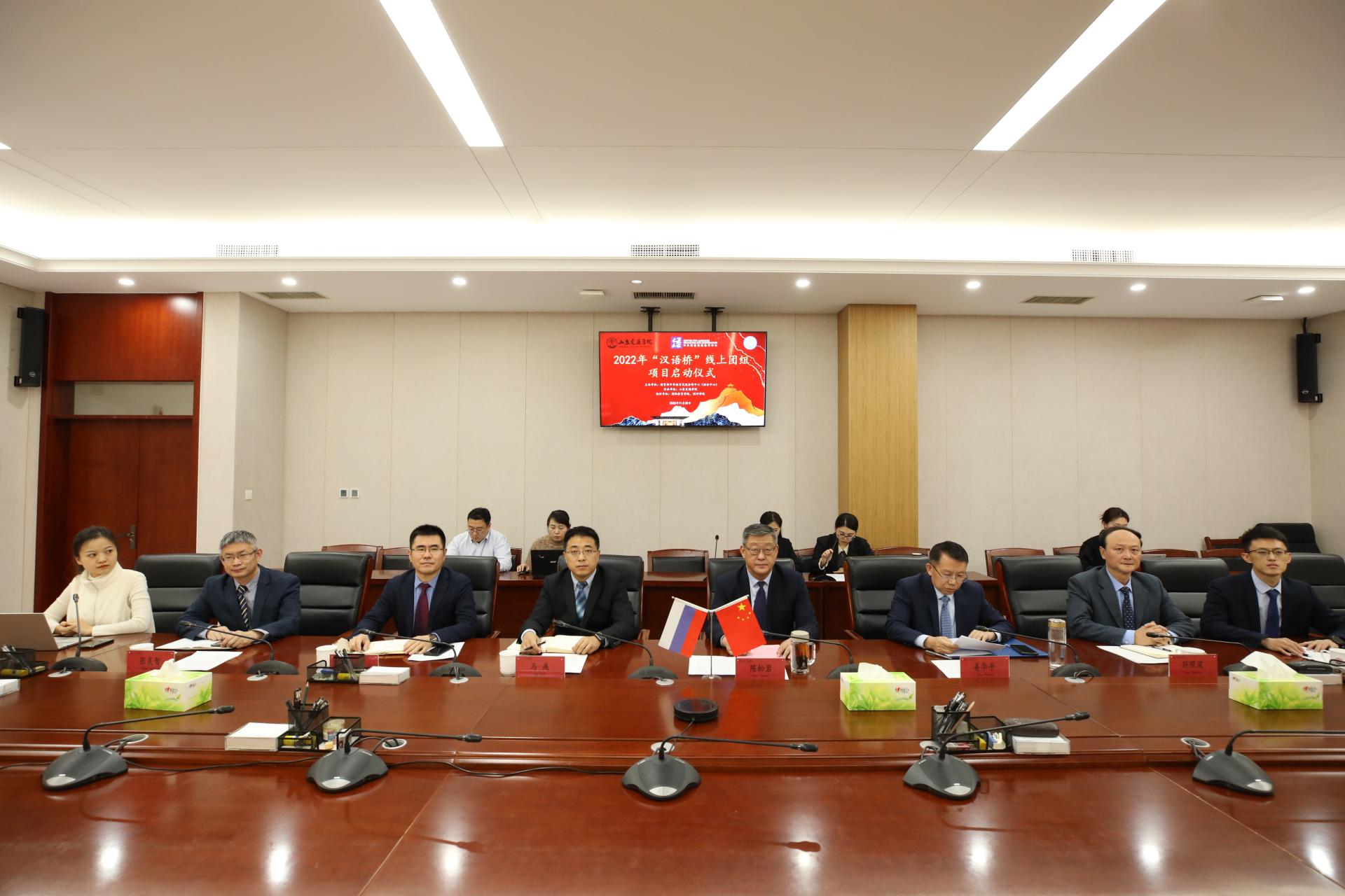 11月30日下午,学校在长清校区明德楼303会议室举行2022年“汉语桥”线上团组“汉语其实挺好玩”项目线上开营仪式。学校党委副书记、院长陈松岩,党委委员、副院长姜华平;俄罗斯顿河国立技术大学校长梅什西·别萨里昂·乔霍耶维奇,副校长别斯科贝里内·阿列克谢·尼古拉耶维奇出席仪式。仪式由姜华平主持。
