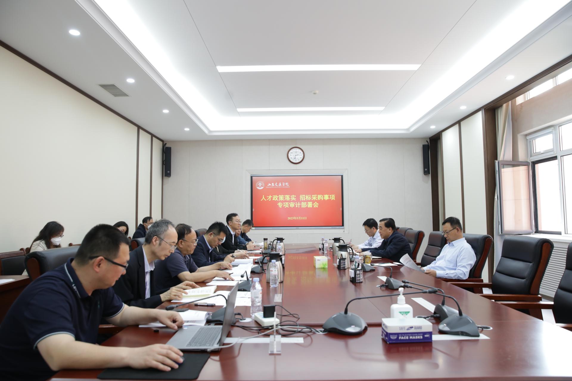 5月11日,学校在长清校区明德楼302会议室召开人才政策落实、招标采购事项专项审计部署会。学校党委书记王焕斌,党委委员、副院长曲同军,党委委员、副院长来逢波出席会议。会议由王焕斌主持。