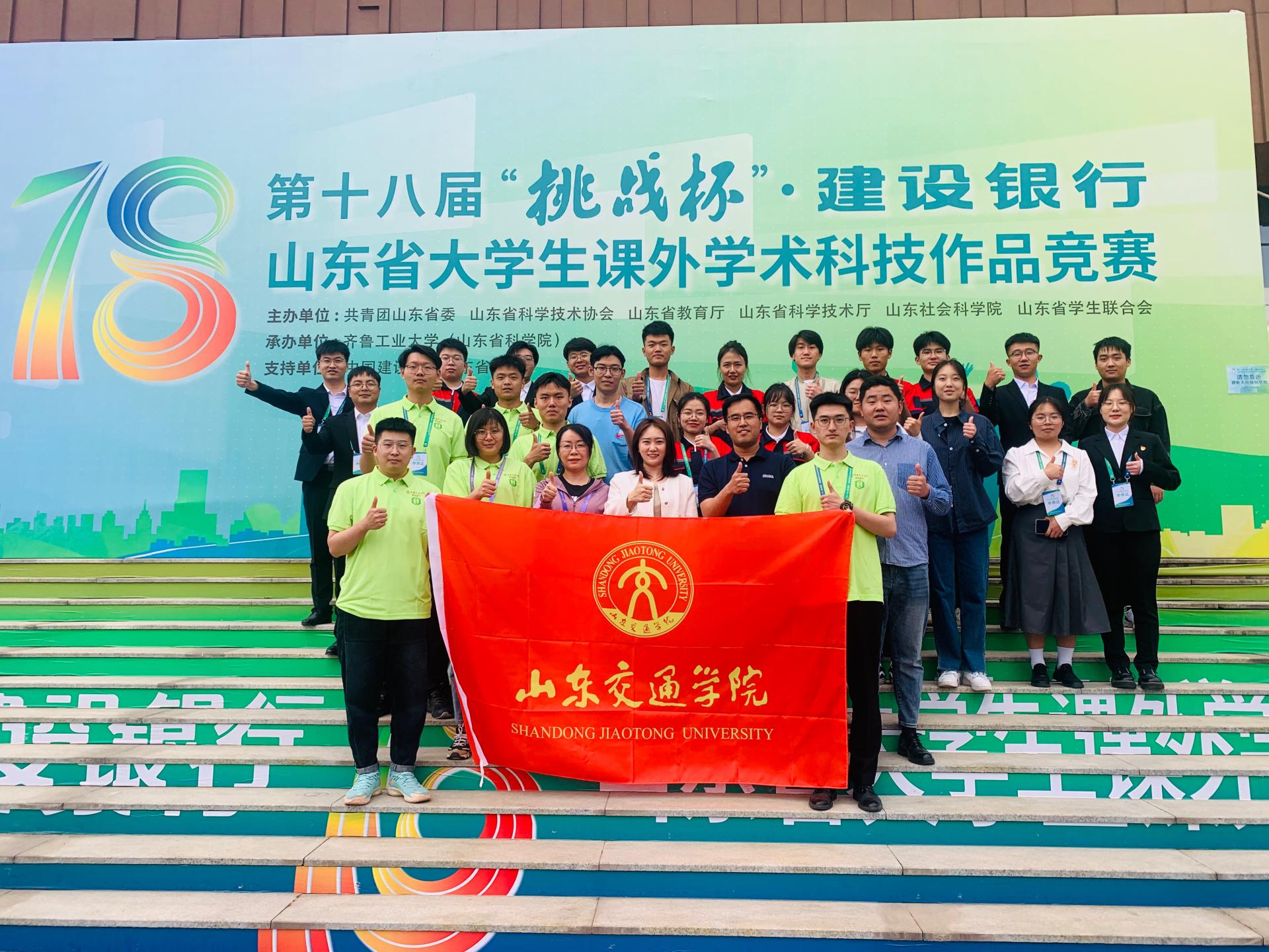近日,第十八届“挑战杯”大学生课外学术科技作品竞赛省赛终审决赛(普通高校组)在齐鲁工业大学(山东省科学院)举办,我校获特等奖3项、一等奖4项、二等奖2项、三等奖5项,学校获得“优胜杯”,获评“优秀组织奖”。我校获特等奖并推荐参加国赛的项目总数位居全省高校第4位、省属高校第2位,总成绩高居同类院校第1位。