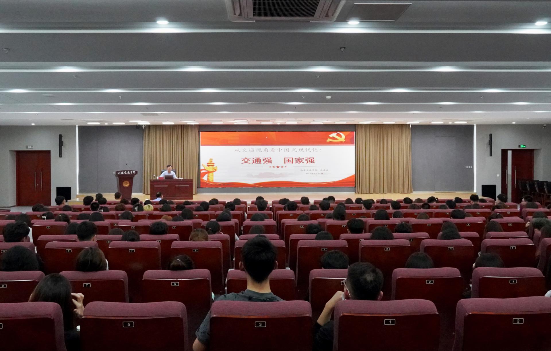 学校党委委员、副院长来逢波为经济与管理学院、轨道交通学院师生讲专题党课。来逢波以《从交通视角看中国式现代化:交通强 国家强》为题,从“中国式现代化道路的框架性含义”“中国式现代化——交通强 国家强”“交通强国山东示范区建设”“山东交通学院:特色优势与使命担当”等四个方面,就交通视角下如何推进中国式现代化进行详细阐述,深刻分析了交通强国建设的四个关键突破点、交通强国山东示范区建设的目标和实施路径。他指出,近年来学校建设高水平人才队伍、攻关高层次科技奖励、搭建高能级科研平台,以高质量发展为交通强国建设贡献交院力量。他勉励党员学生,要把个人的价值追求融入党和国家事业中,在中国式现代化光辉征程中踔厉奋发、勇毅前行。