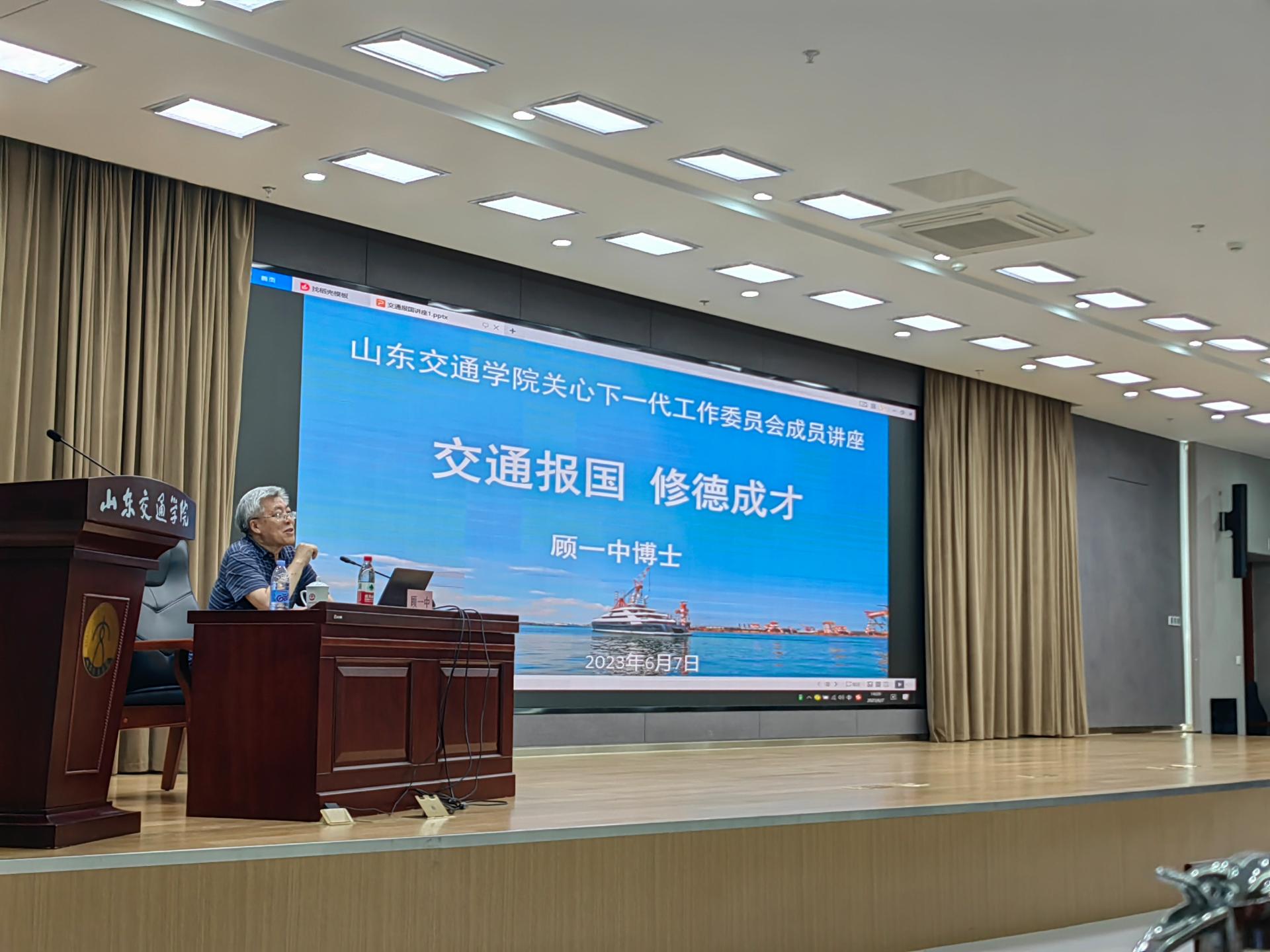报告会上,顾一中作《交通报国 修德成才》报告,从交通报国的身边榜样、广阔前景、报国立业三个方面,讲授了中国及山东船舶发展史及中国船舶工业的现状和未来发展前景,给同学们上了一堂生动的爱国主义教育课。