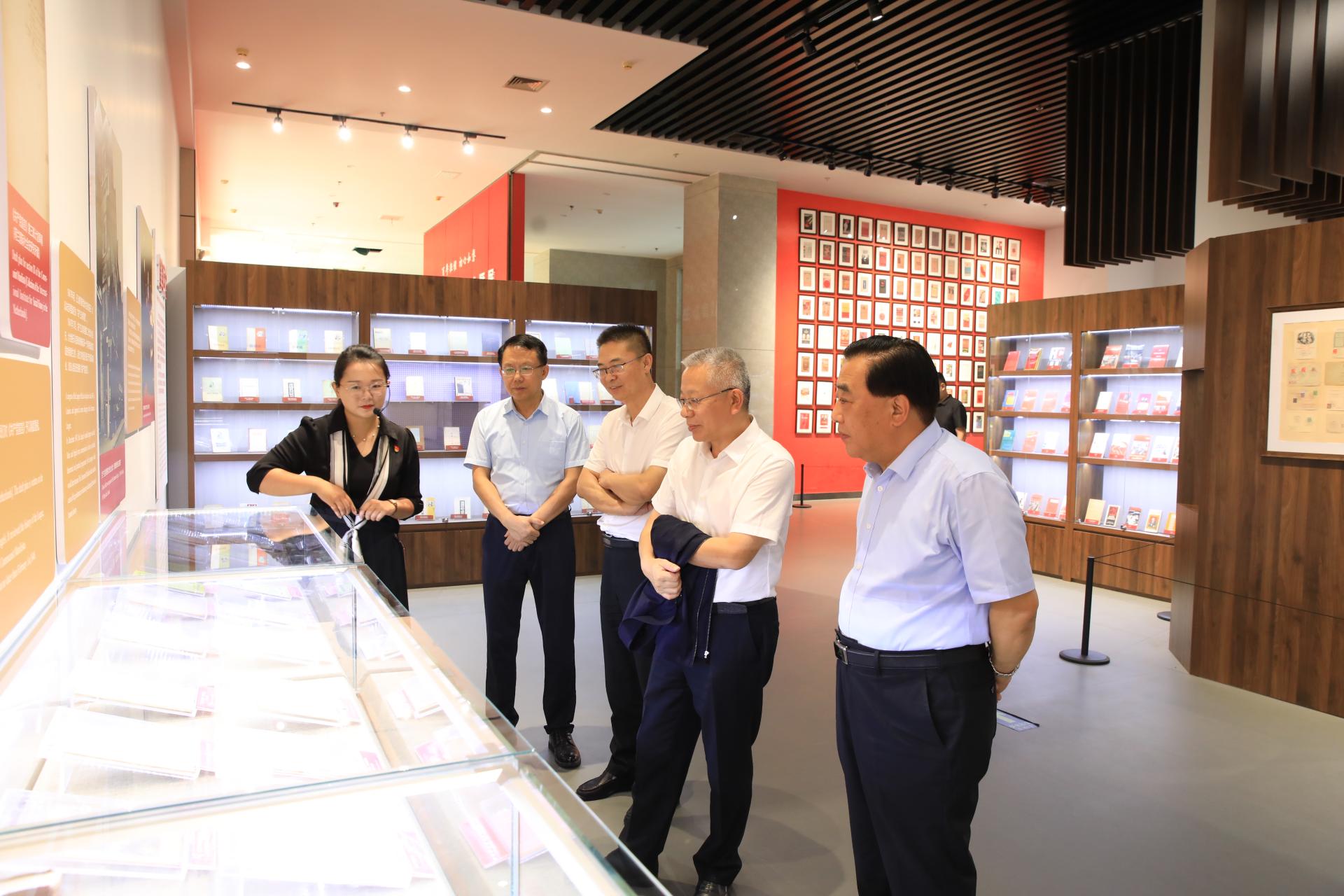 座谈会后,王焕斌陪同丁邦文一行参观了学校《共产党宣言》主题馆和道路加速加载实验室等。