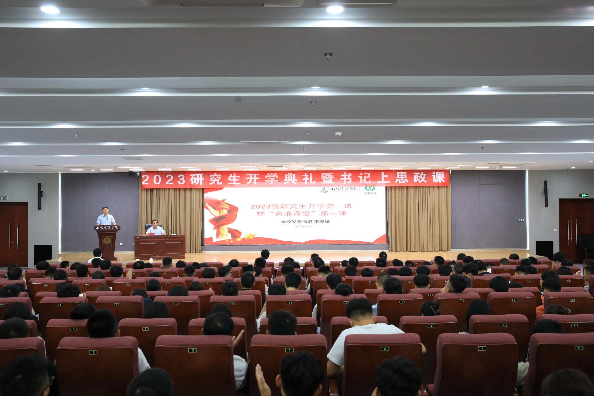 9月7日上午,学校党委书记王焕斌在长清校区明德楼101报告厅,以《整装启程,不懈攀登,做堪当民族复兴重任的新时代青年》为题,为2023级全体研究生新生讲授开学第一课暨“青廉课堂”第一课。