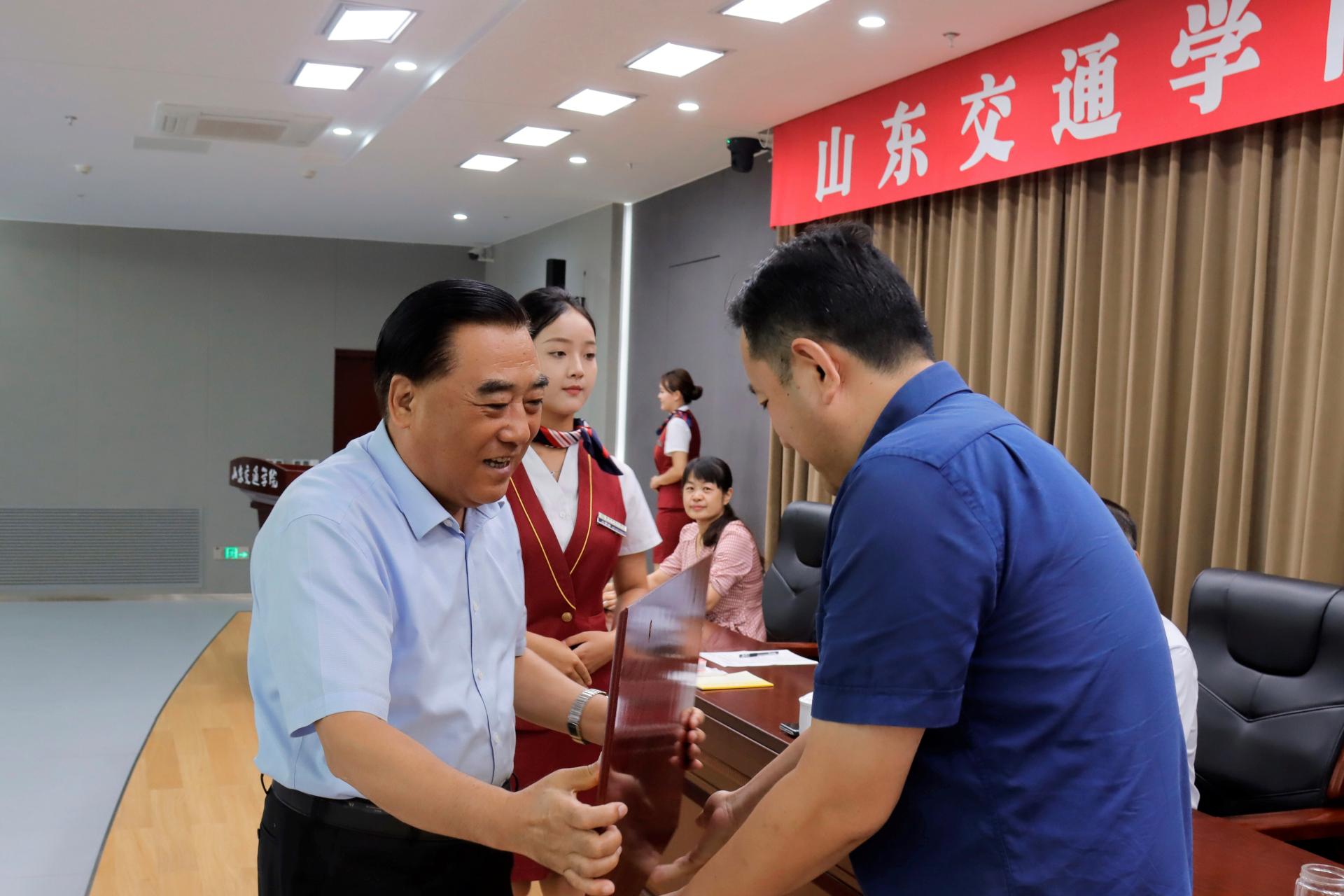 学校党委领导班子成员为光荣执教30年教师代表,2023年教书育人楷模、模范教育工作者代表;师德标兵、优秀教师和优秀教育工作者代表,以及第三批“山东省高校黄大年式教师团队”代表颁发了荣誉证书和奖牌。学生代表为光荣执教30年教师献花表达敬意。