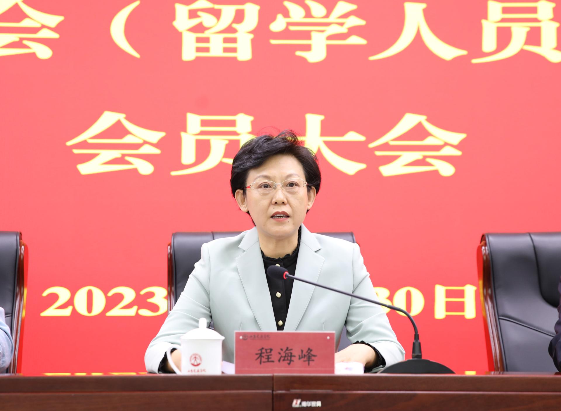 程海峰代表山东省欧美同学会(山东省留学人员联谊会)向大会的成功召开和新当选的山东交通学院欧美同学会(留学人员联谊会)会长、副会长及理事会成员表示热烈祝贺。她指出,党的十八大以来,以习近平同志为核心的党中央高度重视统一战线和欧美同学会及海外留学人员工作,先后在多次会议上发表了一系列重要讲话。近年来,我校统战工作以习近平新时代中国特色社会主义思想为指导,积极把握新时代统一战线工作新机遇,凝聚人心、服务大局,统一战线工作出现了崭新局面,欧美同学会(留学人员联谊会)要加强政治建设,坚持爱国底色,实现留学报国。