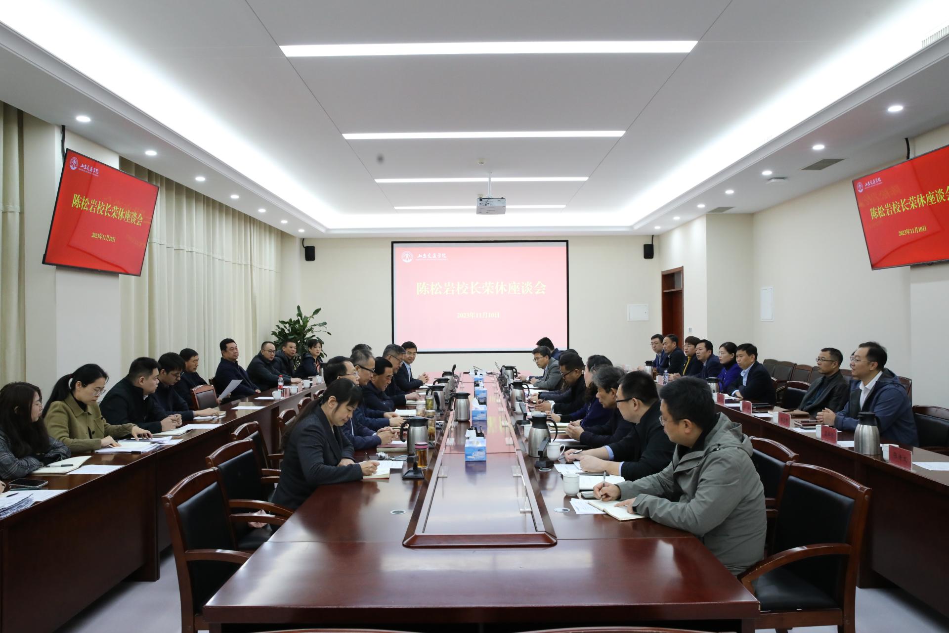 座谈会上,与会代表向陈松岩院长献上鲜花。与会人员纷纷为陈松岩院长送上祝福,希望他退休不退志、离岗不离心,继续为学校建设发展建言献策、贡献才智。
