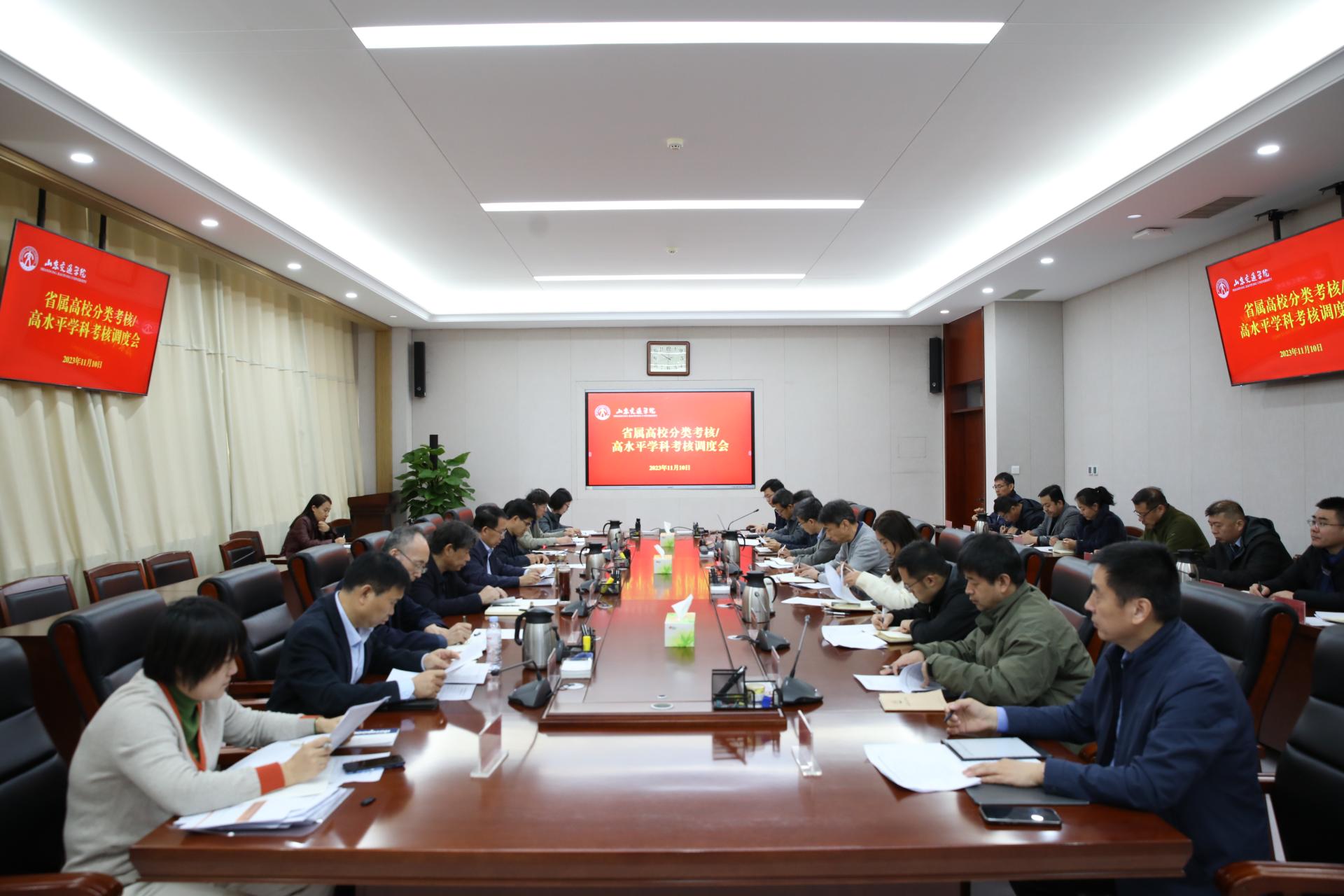 姜华平指出,省属本科高校分类考核和高水平学科绩效考核均是事关学校高质量发展的重要考核,一定要提高思想认识,吃透文件精神,认真研究考核指标要求,科学凝练工作成效,做好成果的纵向发展和横向对比数据分析,突出学校高质量发展的优势与特色。他强调,要强化责任担当,把目标责任压实到岗到人,统筹协调推进各项考核工作顺利开展;要发挥好考核以评促建、以评促改的作用,找不足、找差距,补短板、强弱项,确保学校各项工作再创佳绩。