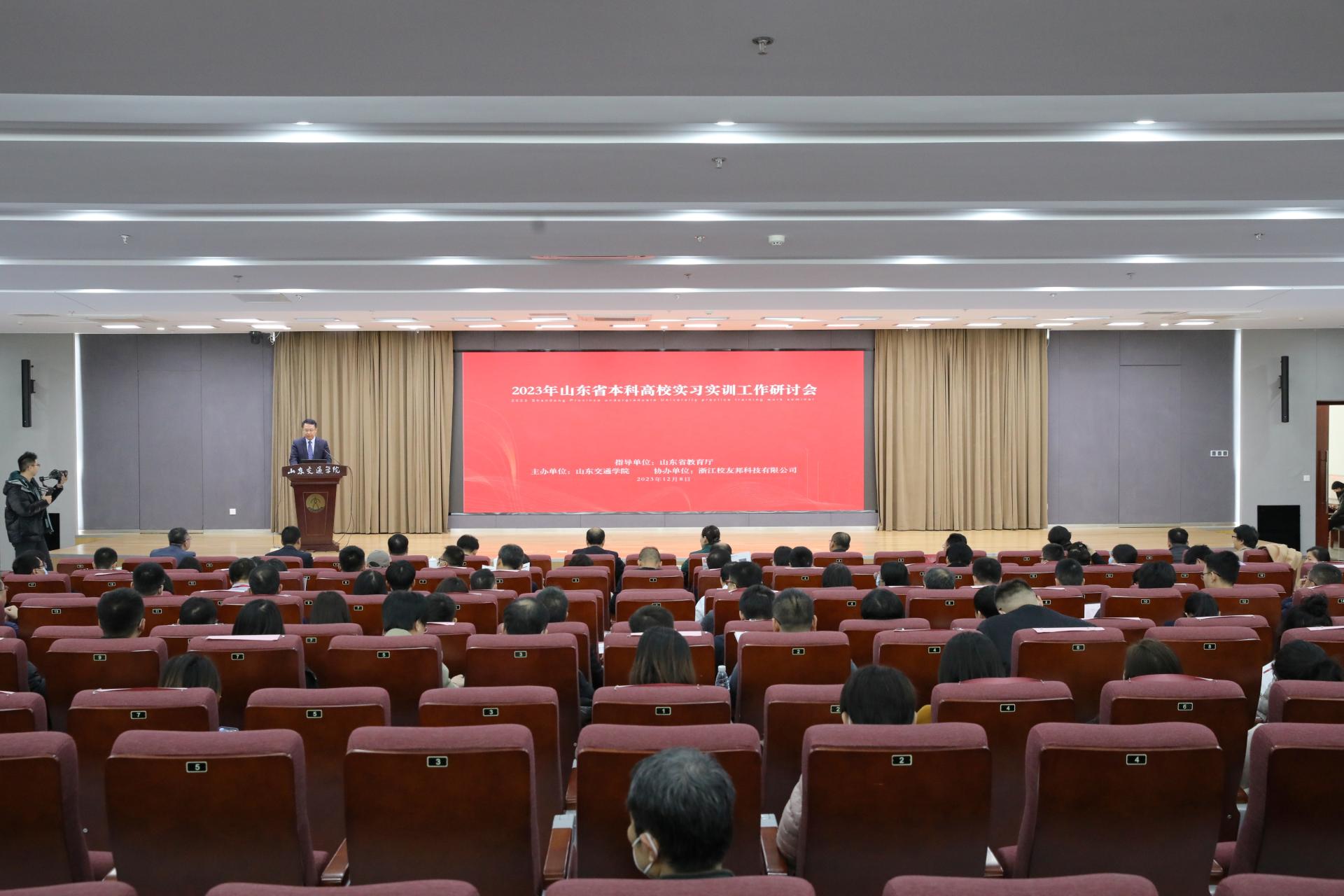 12月8日,2023年山东省本科高校实习实训工作研讨会在我校成功召开。本次会议旨在加强全省本科高校学生实习实训的组织与管理,提高实习实训的质量与效果,强化培养学生的实践能力和创新精神。会议由山东省教育厅高等教育处指导,我校主办,浙江校友邦科技有限公司协办。