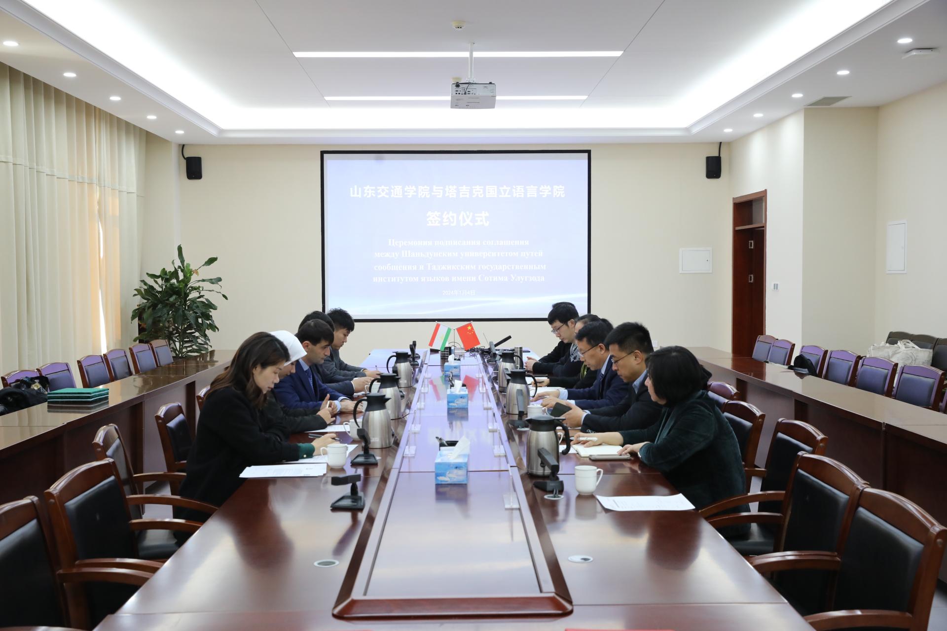 1月4日,学校与塔吉克国立语言学院签约仪式在长清校区明德楼301会议室举行。学校党委委员、副院长姜华平,塔吉克国立语言学院副院长卡里莫夫·阿莫努尔罗出席签约仪式。