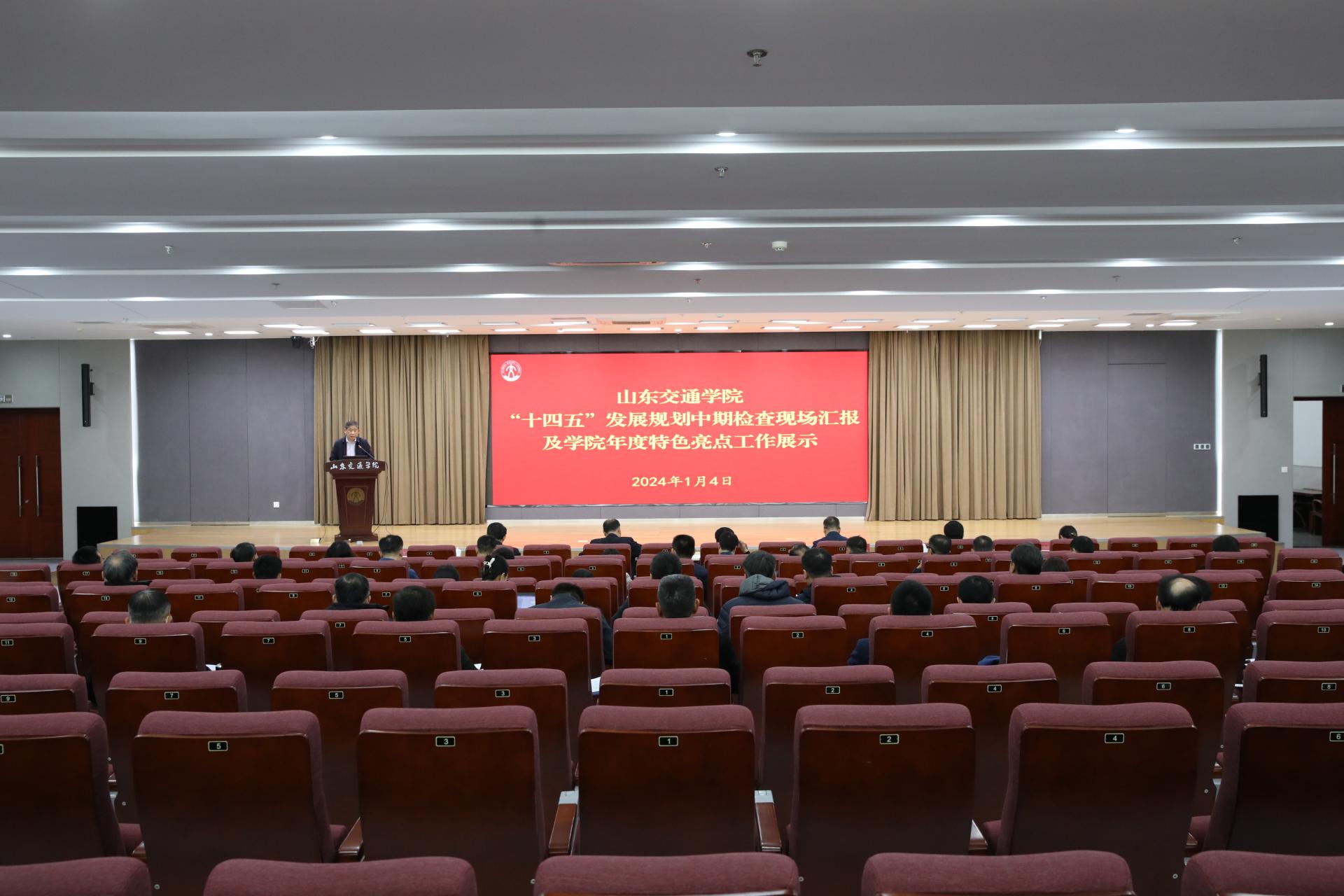 1月4日下午,学校在长清校区明德楼101报告厅召开“十四五”发展规划中期检查汇报会及学院年度特色亮点工作展示会。学校党委领导班子成员出席会议。会议由党委委员、副院长王保群主持。