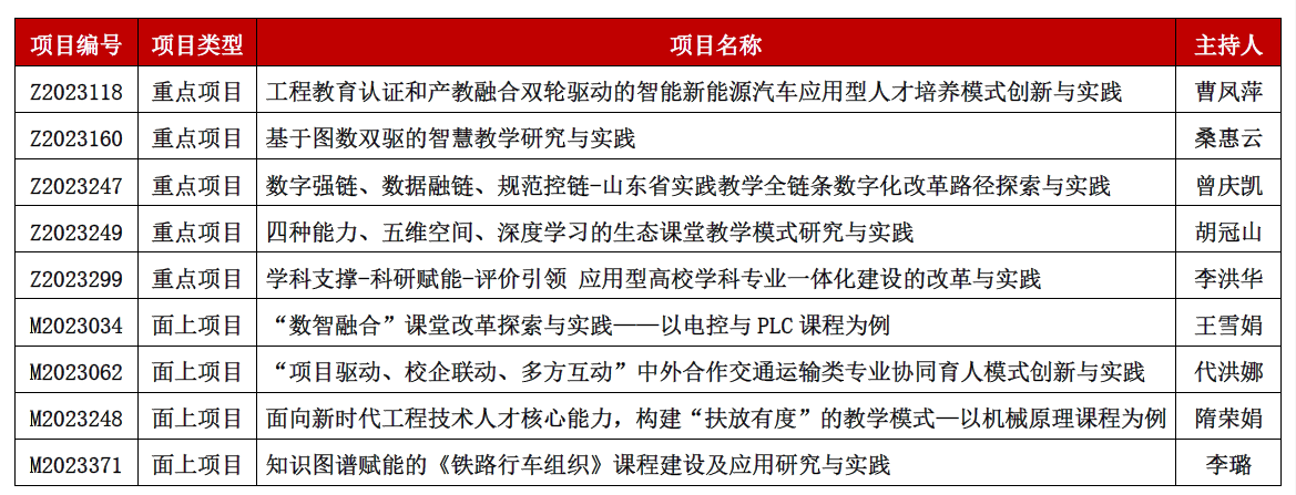 近日,山东省教育厅公布了2023年山东省本科教学改革研究项目立项名单,我校推荐的9个项目全部获批立项。其中,重点项目5项、面上项目4项,立项项目数量连续三年位列全省同类院校首位。