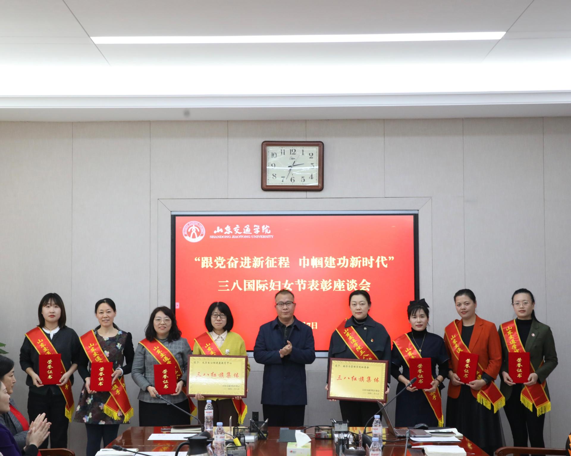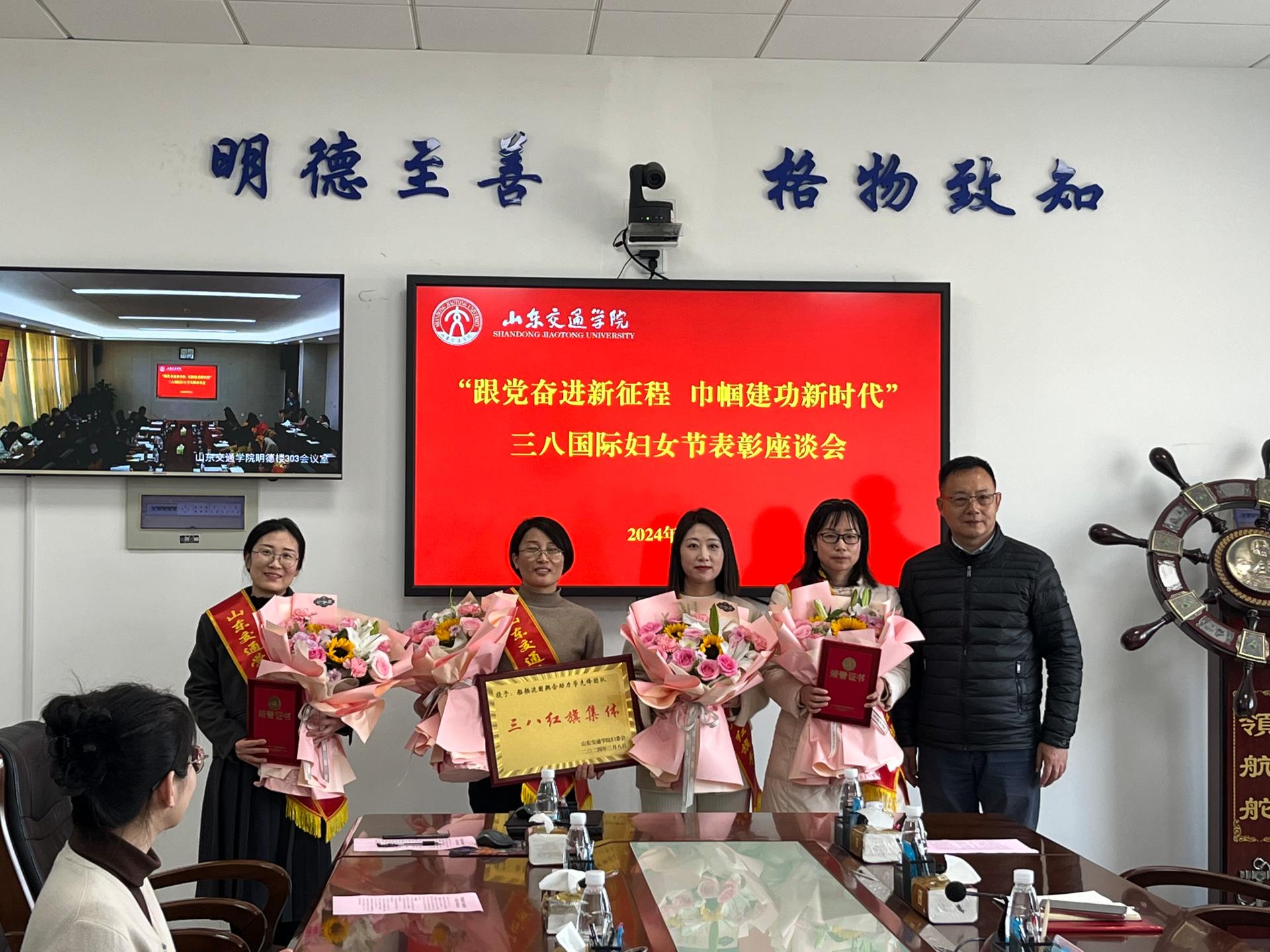 3月7日下午,学校在长清校区明德楼303会议室召开以“跟党奋进新征程 巾帼建功新时代”为主题的“三八”国际妇女节表彰座谈会。学校党委副书记李贞涛,党委委员、副院长曲同军,党委委员、党委宣传部部长周颜玲出席会议。会议由周颜玲主持。