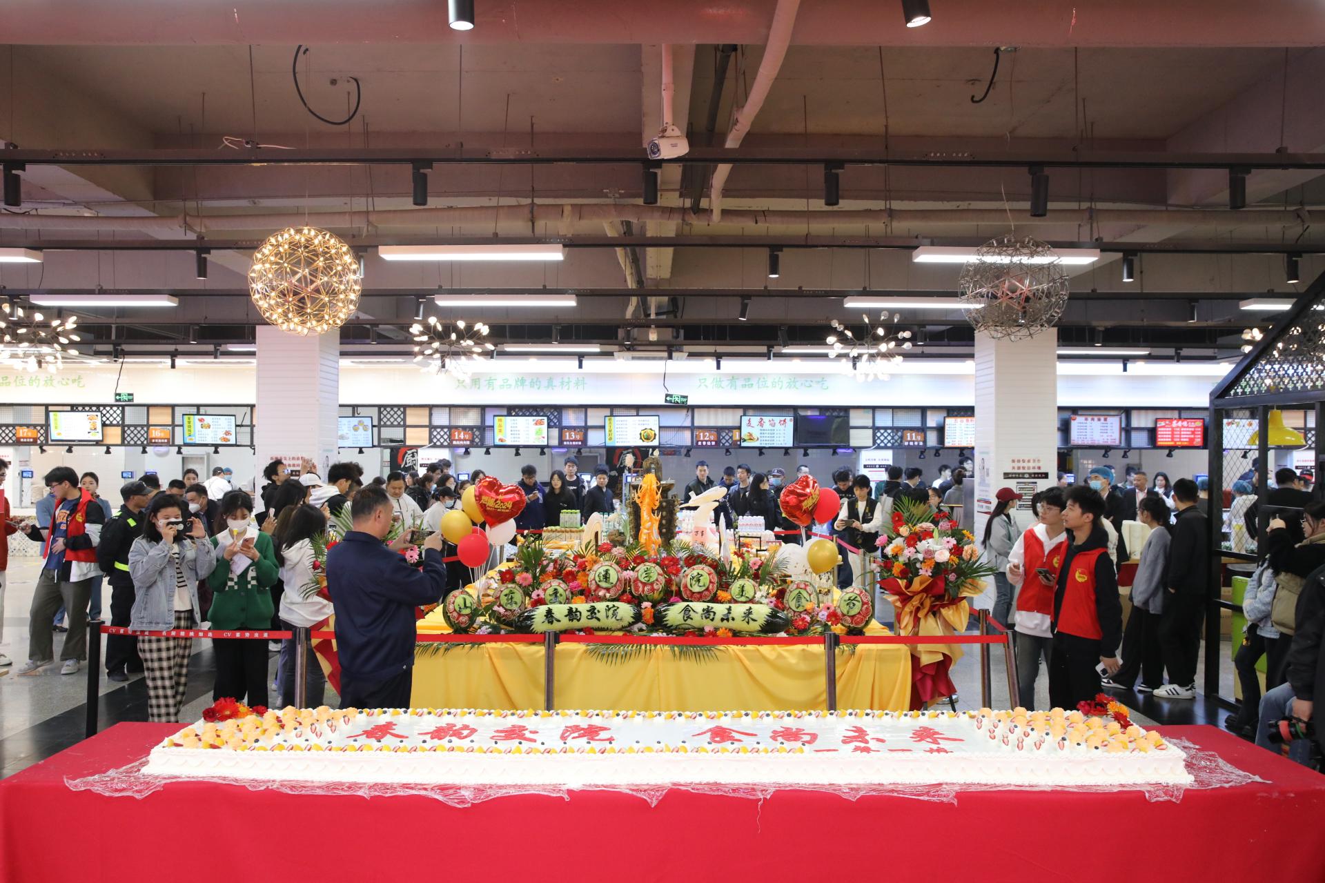 本次活动设置了美食展示区、免费品尝区、游戏区和抽奖区。美食展示区展示主题雕刻、金丝大虾、金蟾献宝、一骑红尘妃子笑、发财熊掌、粽香龙排、富贵牡丹、大展宏图、金菊飘香等传统经典美食,以及深受大家喜爱的雪媚娘、提拉米苏、蛋黄酥、蛋挞、麻薯、寿司、肉松小贝、老婆饼、虎皮蛋糕、榴莲酥等甜品点心。免费品尝区包含东坡肉、酱香鸭、麻辣鸭翅、海带结、卤鸡腿等特色菜和各地方特色小吃。师生共同品尝美食,现场热闹有序、欢快愉悦。