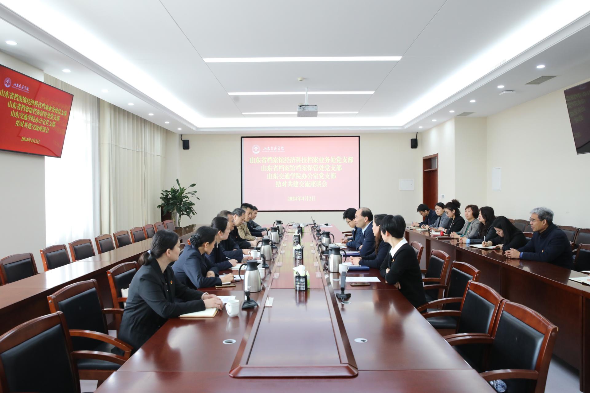 4月2日上午,学校办公室党支部与山东省档案馆经济科技档案业务处党支部、档案保管处党支部在长清校区明德楼301会议室开展结对共建活动。山东省档案馆副馆长赵琳出席活动。学校党委副书记、院长孔伟金作为办公室党支部成员参加活动。