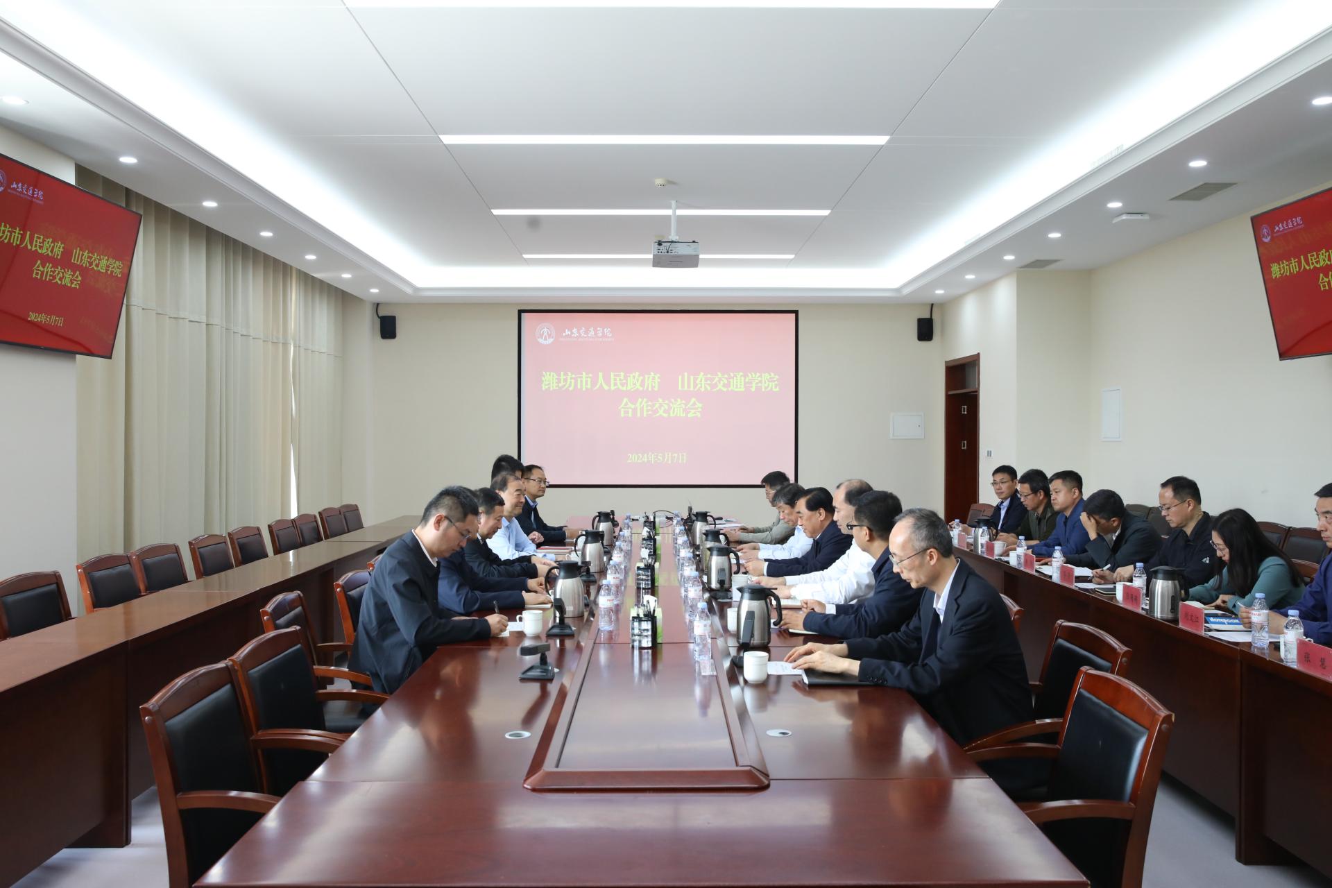 周俊详细介绍了潍坊市经济社会发展现状,并表示,潍坊是全国性综合交通枢纽,高速、高铁、机场、港口齐备,交通区位优势明显,山东交通学院作为交通特色高校,交通类学科专业实力强劲,双方有着深厚扎实的合作基础。他期望,在当前加快建设更好潍坊的新阶段,能与我校建立更加紧密的合作关系,进一步优化合作机制、拓展合作领域,努力实现互利共赢高质量发展。
