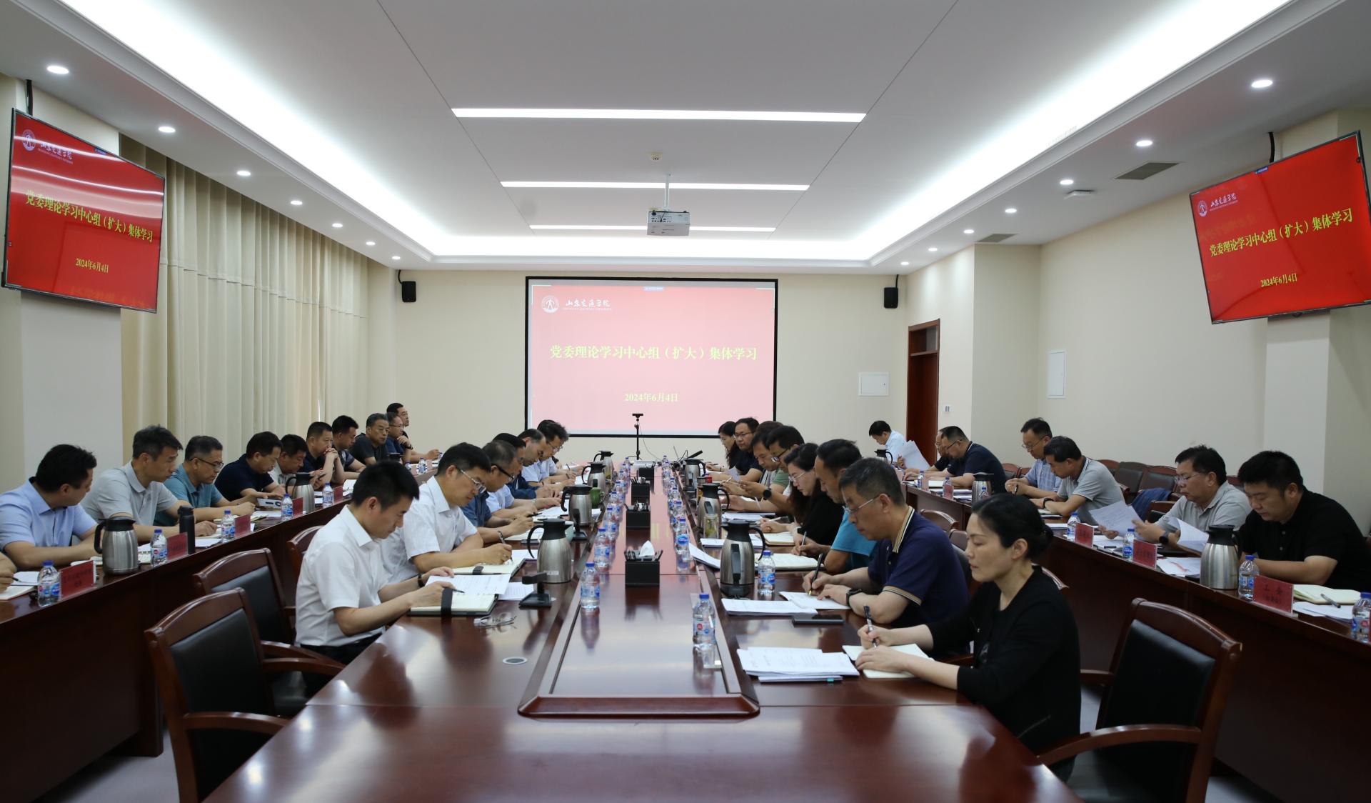 6月4日下午,学校党委理论学习中心组(扩大)在长清校区明德楼301会议室进行集体学习,深入学习习近平总书记关于党的自我革命的重要思想、习近平总书记关于总体国家安全观的重要论述、习近平总书记关于党纪学习教育的重要讲话和重要指示精神、习近平总书记对山东工作重要指示要求等,并联系思想和工作实际进行交流讨论。