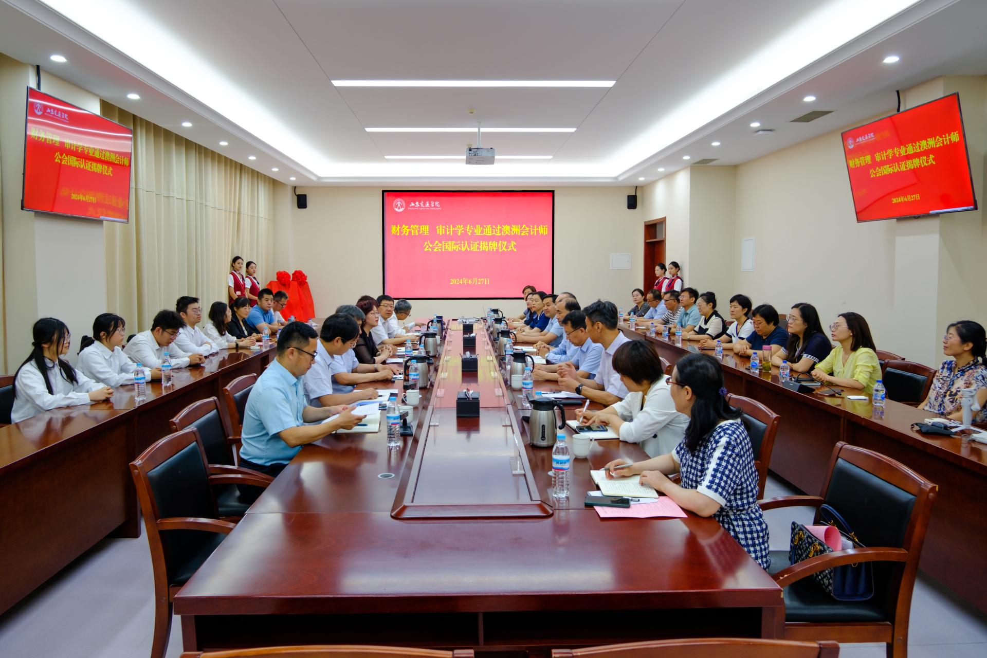 6月27日,学校在明德楼301会议室举行财务管理、审计学专业通过澳洲会计师公会认证揭牌仪式。学校党委副书记、院长孔伟金,党委委员、副院长姜华平;澳洲会计师公会北京代表处首席代表孟文静出席。仪式由姜华平主持。