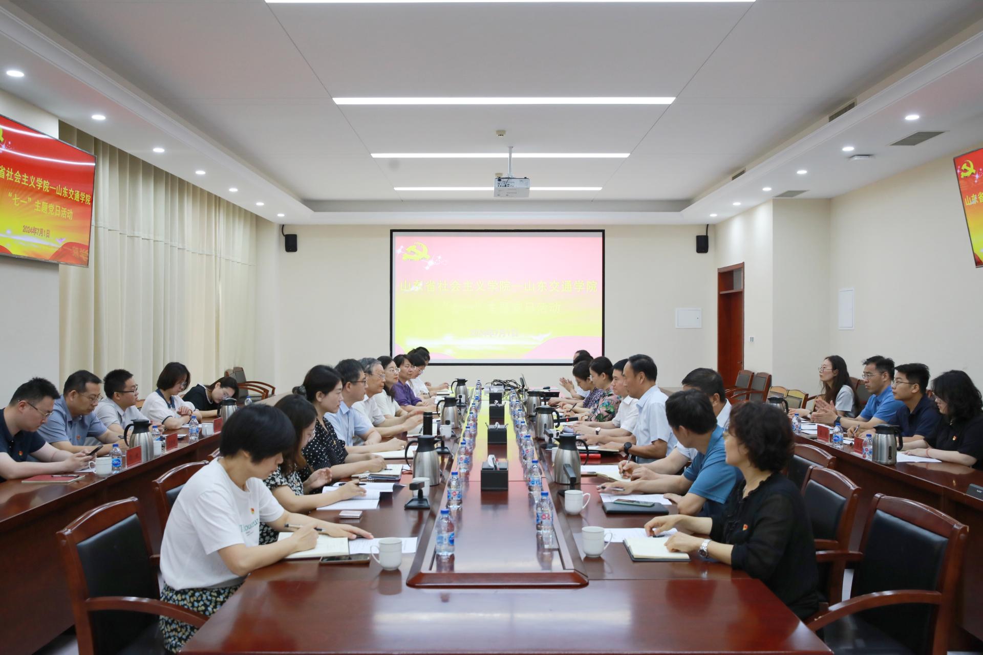 7月1日上午,山东省社会主义学院党组成员、副院长、一级巡视员孙传军,带领山东省社会主义学院教务处党支部、教研部党支部来校,与我校科研处党支部、统战部党支部共同开展庆“七一”主题党日活动。会前,学校党委书记王焕斌会见孙传军一行。主题党日活动由学校党委委员、副院长李秀领主持。