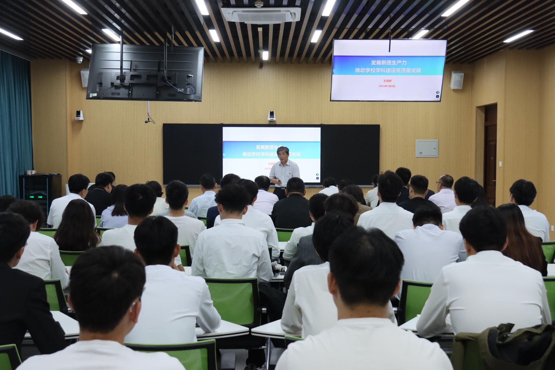 7月4日上午,学校党委委员、副院长王保群在长清校区机电楼A218教室,以《发展新质生产力 推动学校学科建设高质量发展》为题,为航空学院和轨道交通学院青年学生讲授思政课。