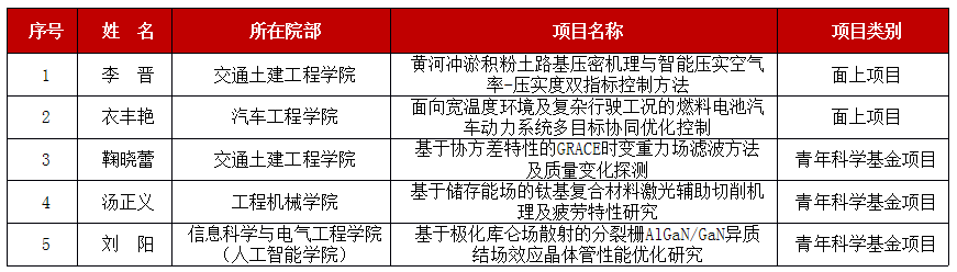 近日,国家自然科学基金委员会公布了2024年度国家自然科学基金项目集中接收期间项目的评审结果,我校共有5项科研项目获得立项资助。其中面上项目2项、青年科学基金项目3项,获批直接经费186万元。