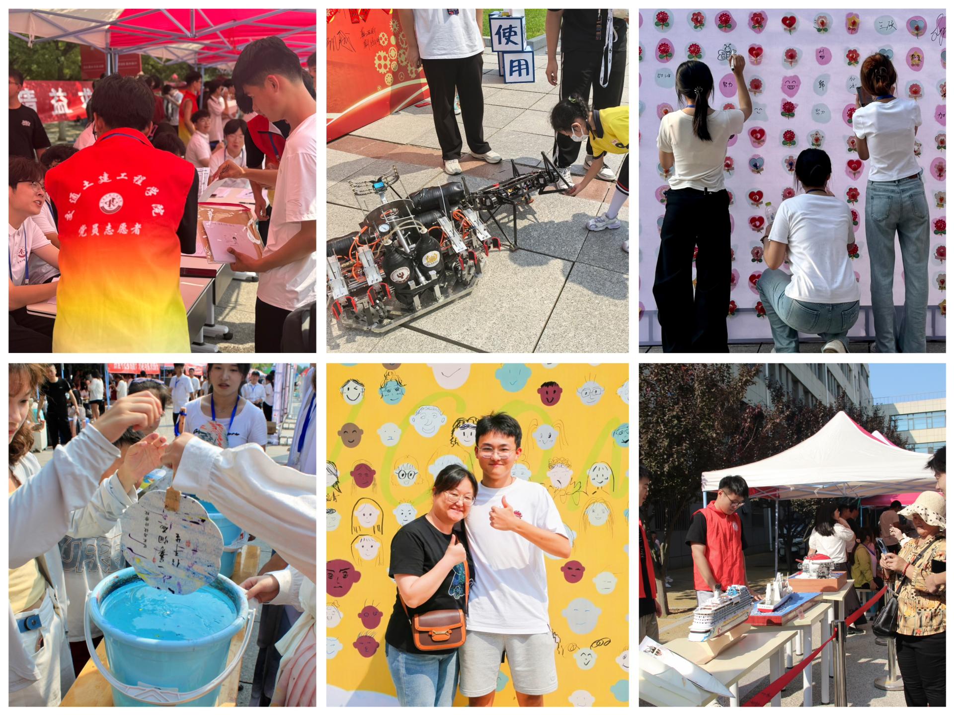 各二级学院设立“党员先锋岗”和“党务工作者先锋岗”,党员们“亮身份、当先锋、做表率”,忙碌的身影成为迎新现场一道亮丽的风景线。工程机械学院展出学生自主设计完成的机器人“插秧卫士”和“机器狗”,供新生进行操作体验。外国语学院设立贴满棒棒糖的欢迎墙,邀请新生写下属于自己的祝福语。艺术与设计学院为新生送上限定漆扇,让新生以“漆”为笔、以“水”为画,亲身体验非遗艺术的美丽与神奇。国际教育学院、顿河学院准备了爆米花和定制可乐,并开展手绘笑脸活动。船舶与港口工程学院设立船模展览区,为新生及家长耐心讲解船模构造、研发历程,共同感受海洋魅力,让新生“秒懂”学院的专业特色。