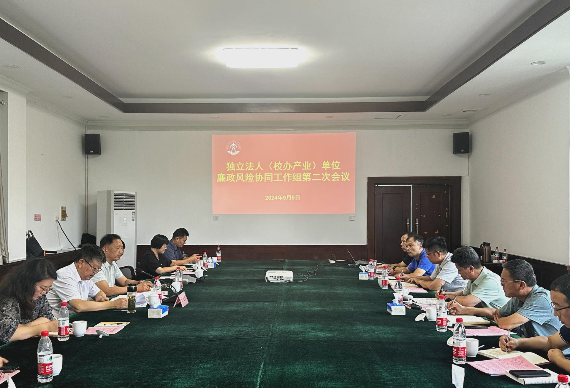 会议传达了学校《关于落实省纪委监委<2024年度“一校一策”推进解决省属本科高校突出问题的方案>的实施方案》;各校办产业单位汇报了廉政风险排查防控工作开展情况;各相关单位(部门)负责人围绕学校产业单位廉政风险防控交流了有关工作情况。