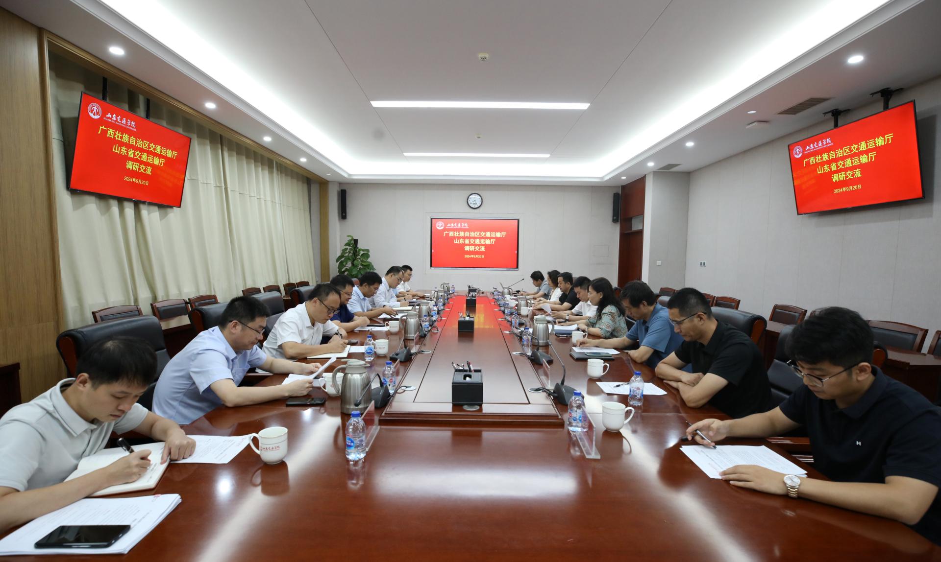 9月20日下午,广西壮族自治区交通运输厅政策研究室副主任孟崇峥、山东省交通运输厅政策研究室副主任卜一一行9人来校座谈交流。座谈会在长清校区明德楼303会议室召开。学校党委书记王焕斌会见来宾,党委委员、副院长李秀领出席会议。会议由科研处处长黄玉娟主持。