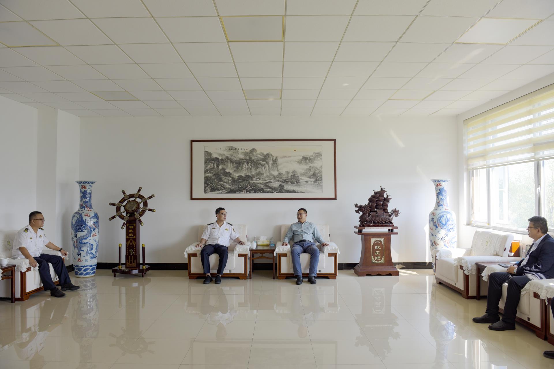 曲同军对张亮一行的到访表示欢迎,对山东海事局、威海海事局长期以来对学校航海教育事业发展的支持和帮助表示感谢,简要介绍了学校作为交通强国建设试点单位,在航海类人才培养、学科专业建设、师资队伍建设、打造海洋交通人才培养新高地等方面的工作开展情况。