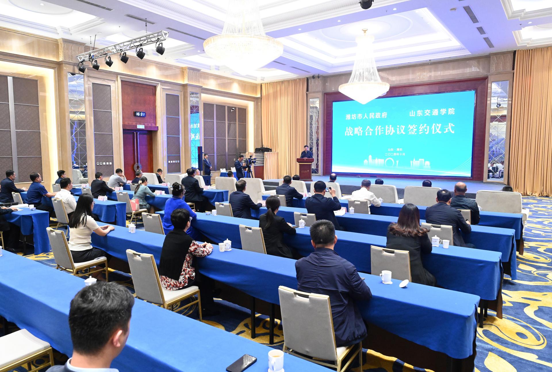 王焕斌在致辞中表示,山东交通学院与潍坊市有着良好的合作基础、建立了深厚的友谊。本次战略合作协议的签署,是推进校地合作实现优势互补、资源共享的重要举措,更是携手并进、共同谱写发展新篇章的崭新起点。学校将以此为契机,紧密对接潍坊产业发展需求,围绕潍坊交通领域的重大问题和关键技术,开展科学研究和技术创新,在城市发展规划、人才交流、科研成果转化等方面加强合作,以实际行动服务潍坊经济社会发展。希望校地双方进一步加强交流、深化合作,以合作促发展,以创新求突破,共同开创合作共赢的美好未来。