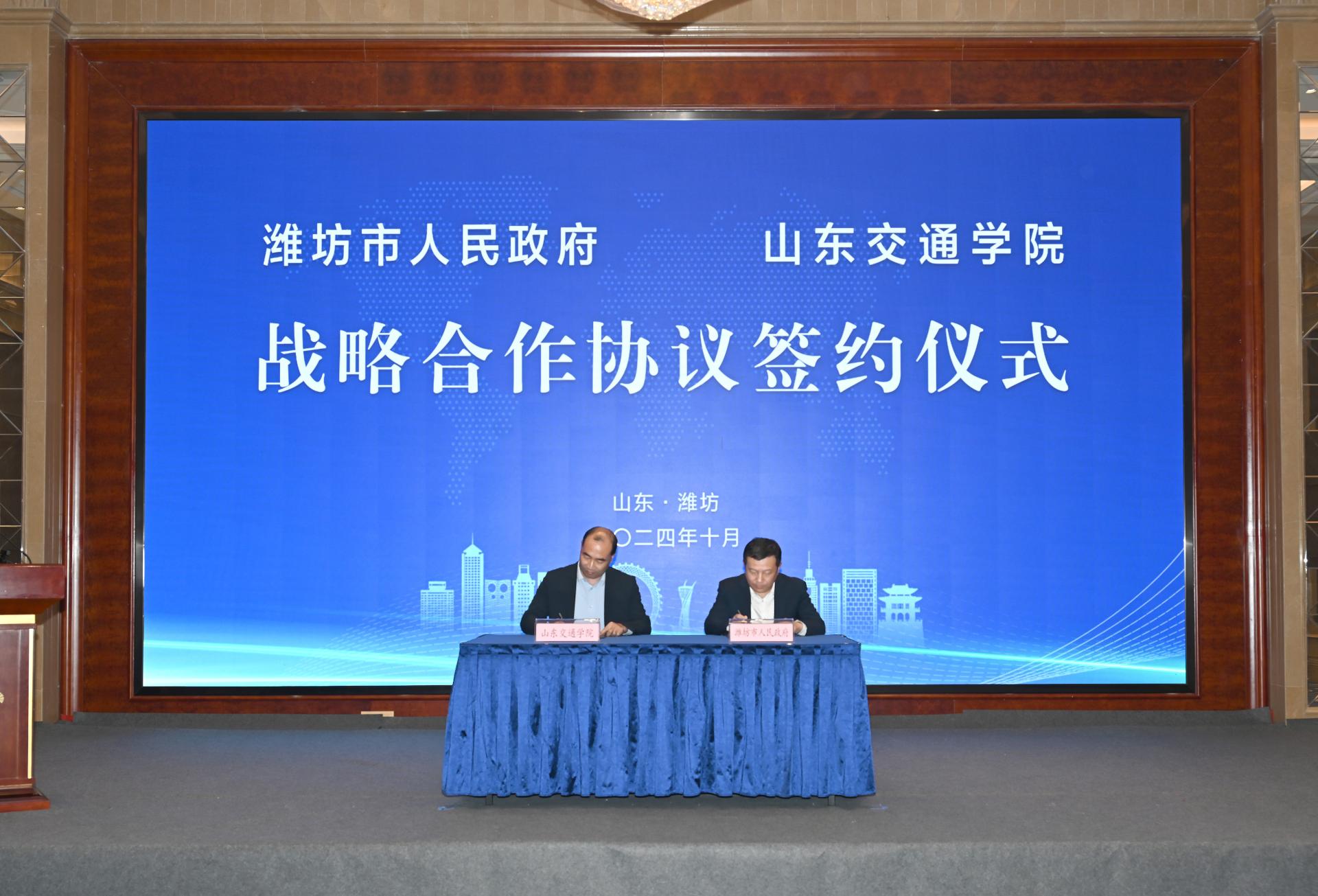 10月12日下午,学校与潍坊市人民政府战略合作协议签约仪式在潍坊富华国际会议中心举行。潍坊市委书记刘运,潍坊市委常委、秘书长、统战部部长赵绪春,潍坊市政府党组成员、副市长周俊;学校党委书记王焕斌,党委副书记、院长孔伟金,党委委员、副院长曲同军,党委委员、副院长姜华平,党委委员、副院长王保群,党委委员、副院长李秀领出席签约活动。