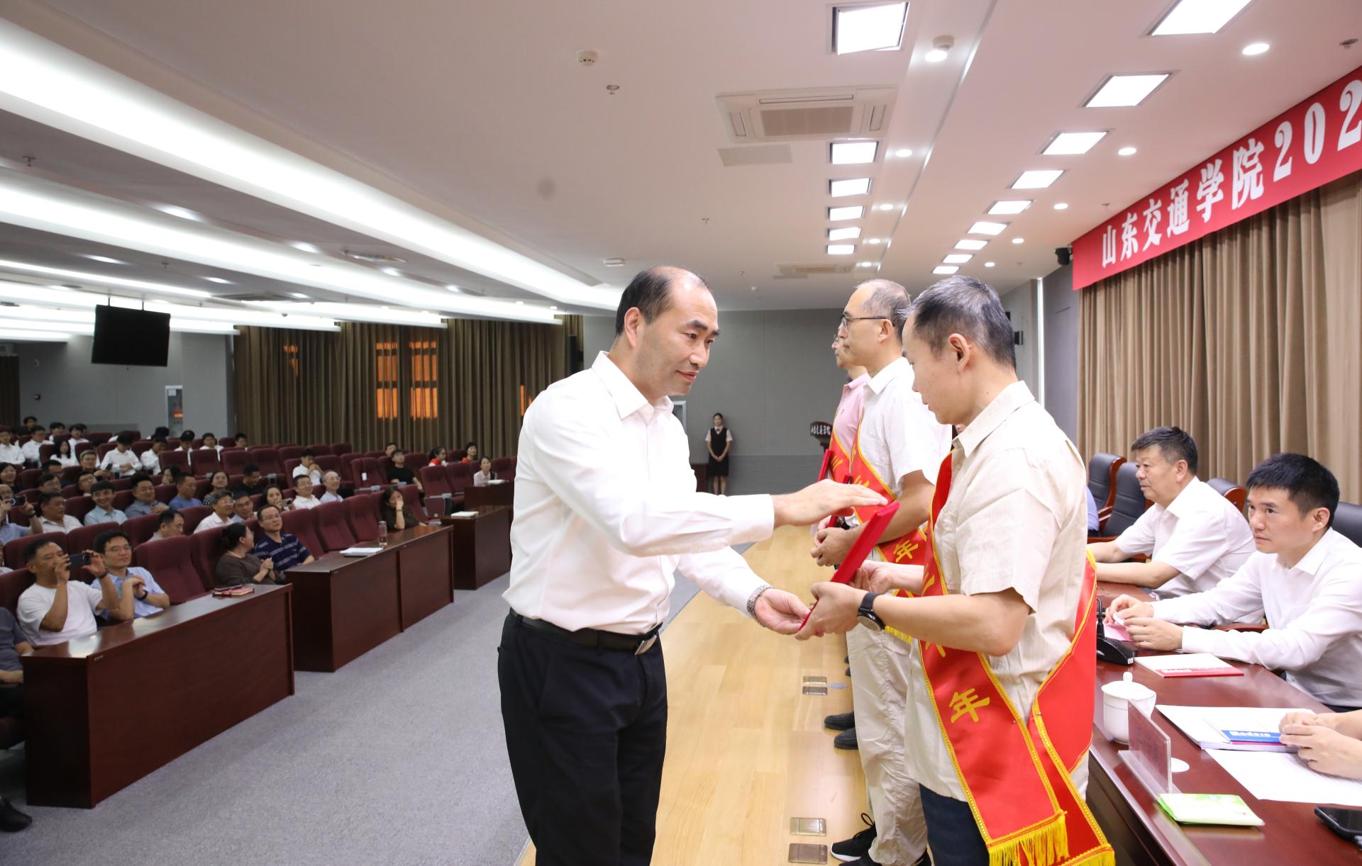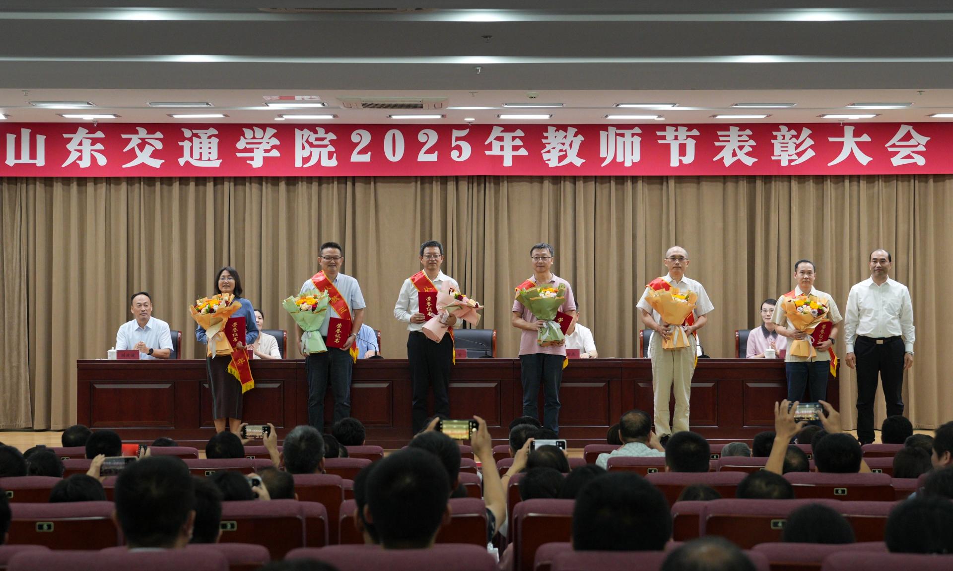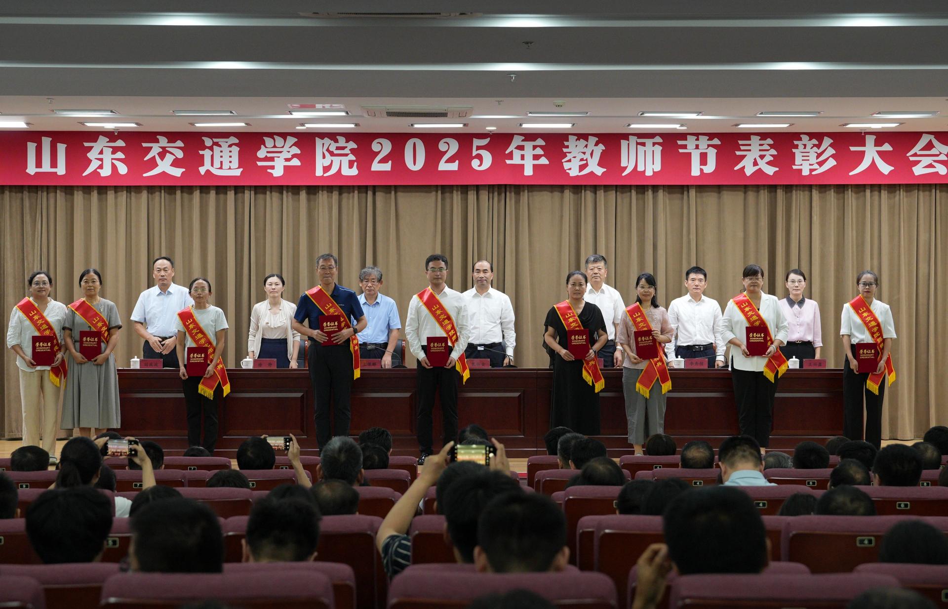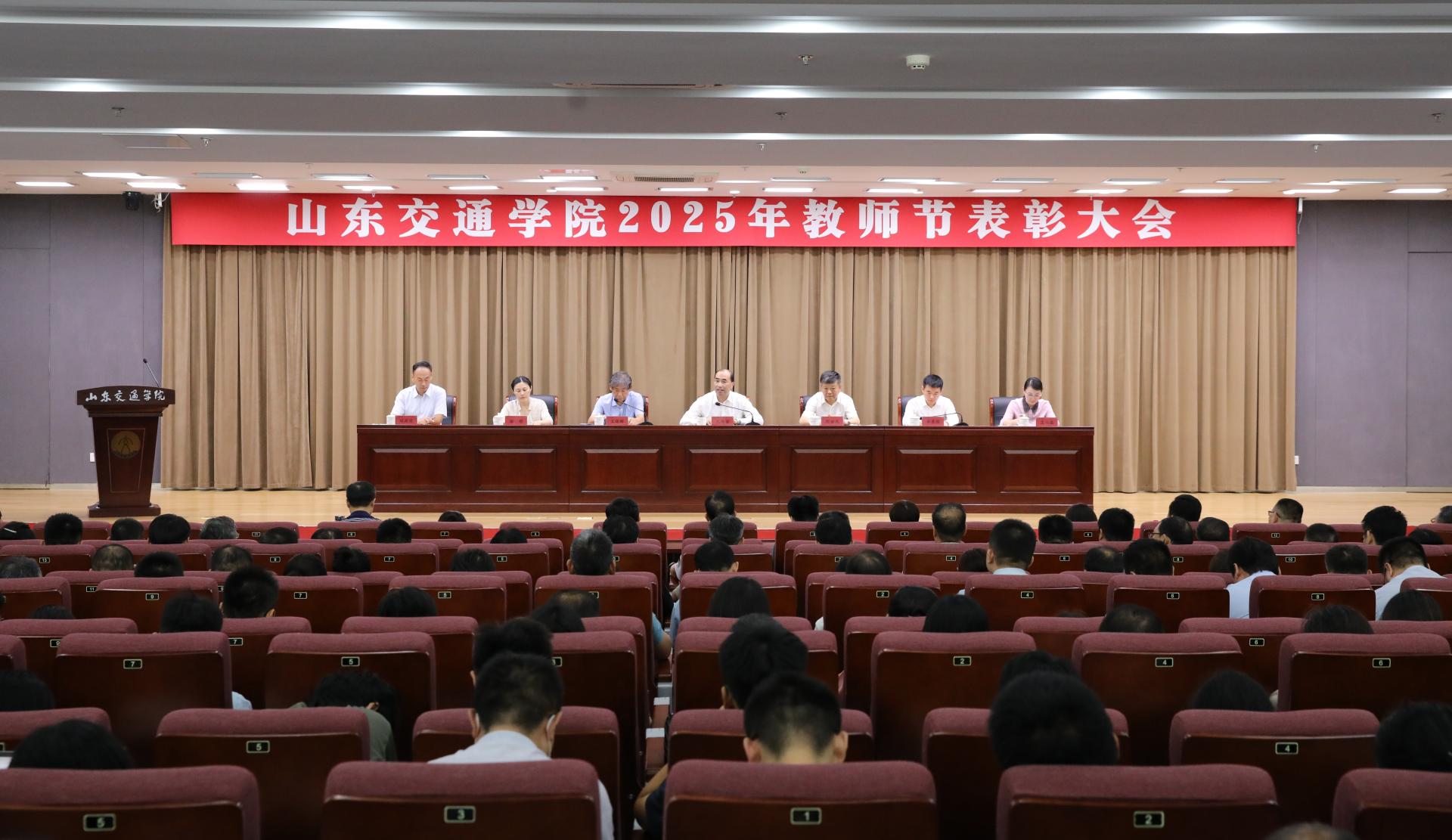 9月9日下午,学校在长清校区明德楼101报告厅召开2025年教师节表彰大会,表彰光荣执教30年教师和在教育教学工作中成绩显著、表现突出的先进典型。学校党委领导班子成员孔伟金、刘世杰、王保群、李秀领、徐静、王兴盈、刘庆波出席会议。会议由党委委员、副院长王保群主持。