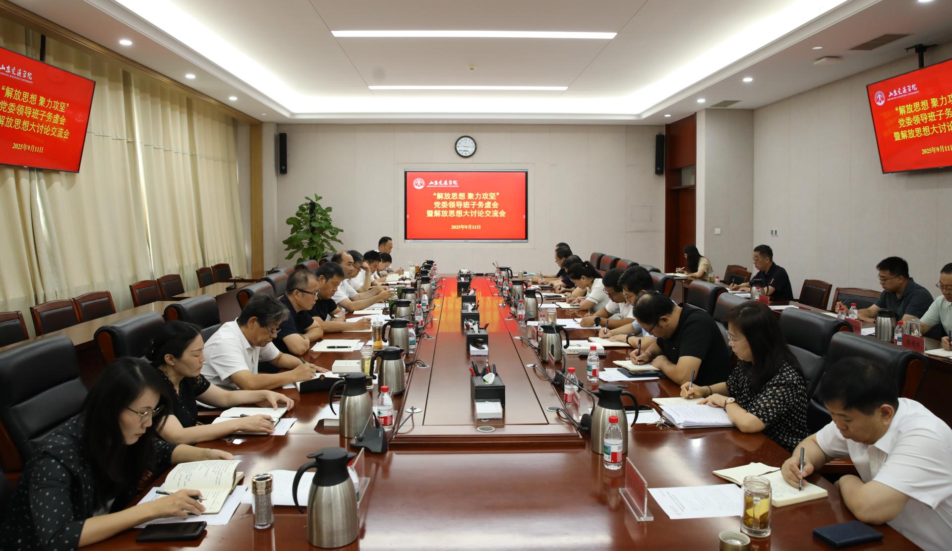9月11日,学校在长清校区明德楼303会议室召开“解放思想 聚力攻坚”党委领导班子务虚会暨解放思想大讨论交流会。学校全体党委领导班子成员出席。会议由党委书记王伟主持。