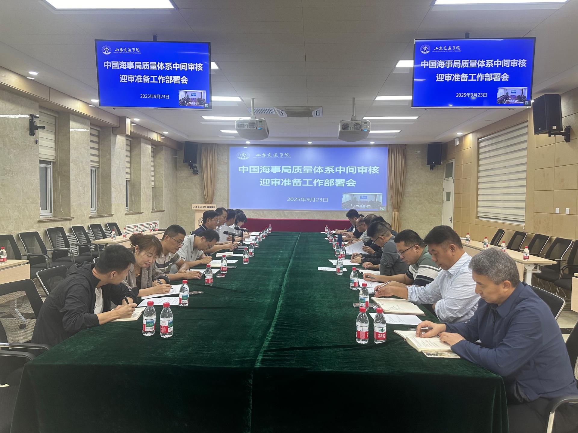 9月23日下午,学校在威海校区第一报告厅召开船员教育和培训质量体系中间审核迎审准备工作部署会。学校党委副书记、质量体系管理者代表李贞涛出席。会议由威海校区机关党委书记、威海校区管理办公室主任李光正主持。